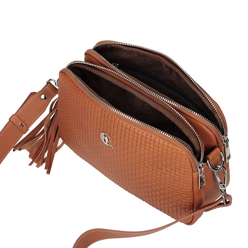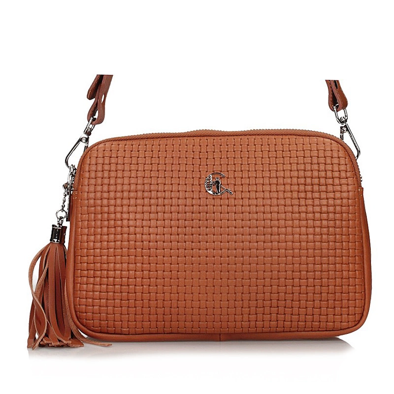 Torebka z najnowszej kolekcji marki Canaletto. Wykonana ze skóry naturalnej. Wyposażona w trzy komory. Zewnętrze komory torebki zapiane na zamek, środkowa zapinana na magnes. Wewnątrz torebki umieszczono kieszonkę zapinaną na zamek. Wygodny w użytkowaniu pasek torebki posiada możliwość regulacji. Po boku torebki doczepiono ozdobny frędzel. Polska produkcja.
