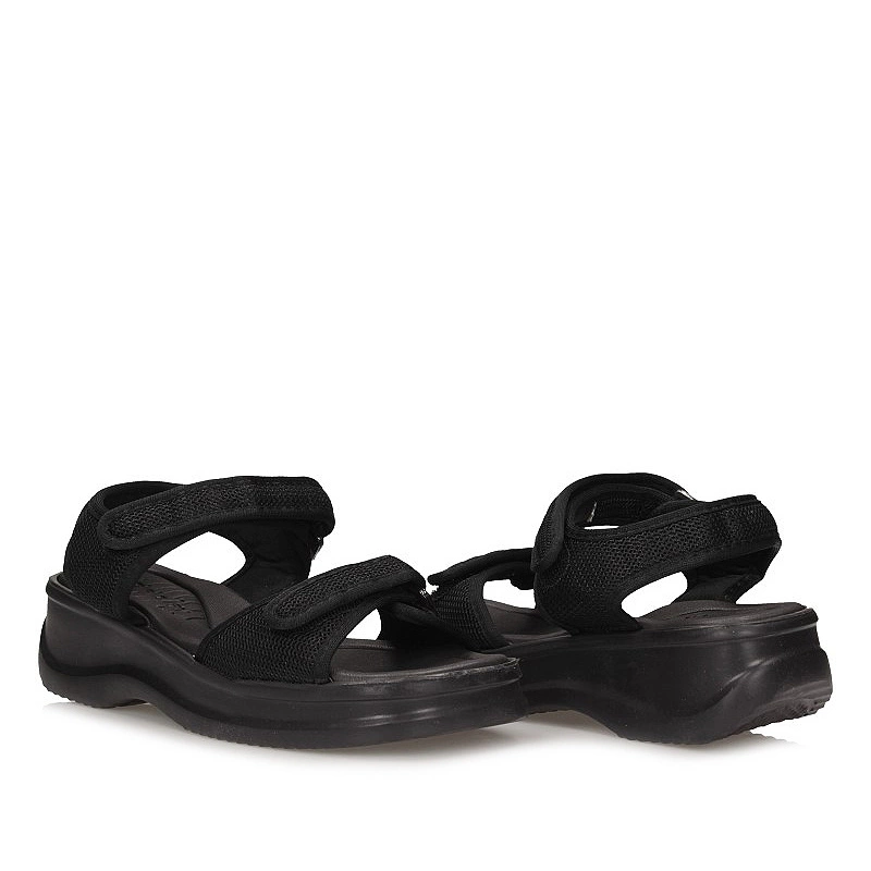 Czarne sandały na koturnie — regulowane zapięcie i miękka wkładka