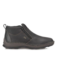 Męskie botki z najnowszej kolekcji jesienno-zimowej prezentuje nam znana oraz renomowana niemiecka marka Rieker. Model ten został wykonany z wysokogatunkowej skóry naturalnej licowej w odcieniu klasycznej czerni. Wnętrze wyściełano przyjemną dla stopy ociepliną naturalną. Obuwie zapinane na wygodny w użytkowaniu zamek. Antypoślizgowa oraz odporna na ścieranie podeszwa została wykonana z wysokiej jakości tworzywa sztucznego.