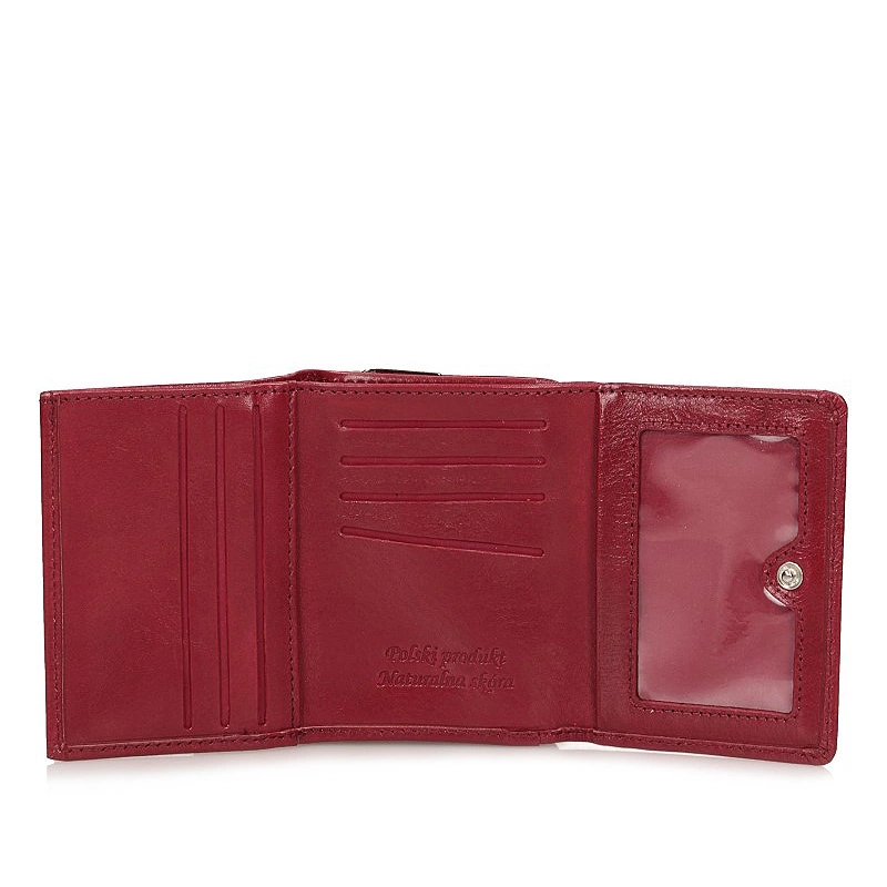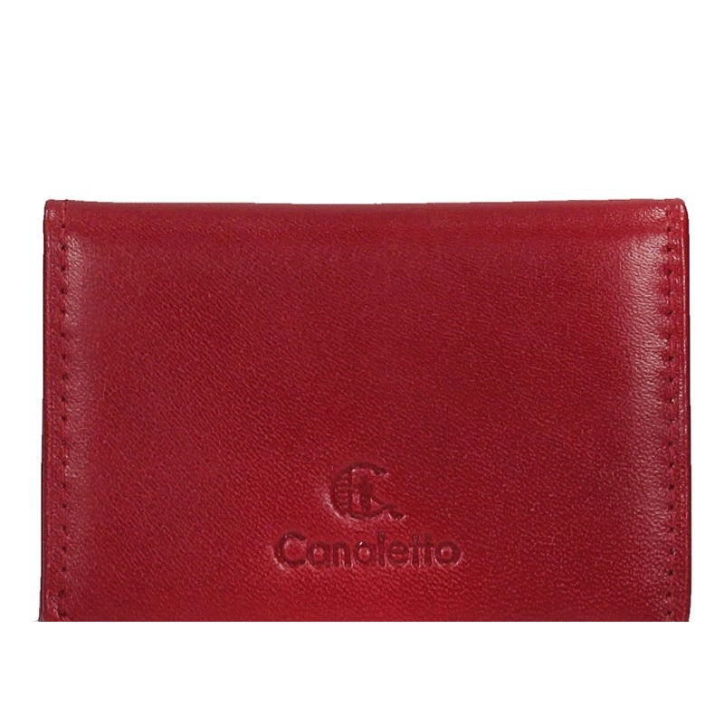 Portfel z najnowszej kolekcji jesienno-zimowej prezentuje nam znana oraz renomowana marka Canaletto. Model ten został wykonany z najwyższej jakości skóry naturalnej licowej w czerwonym odcieniu. Zapinany na wygodny w użytkowaniu zatrzask. Wewnątrz posiada przegrodę na banktony oraz przegrody na karty kredytowe oraz na zdjecia. Z tyłu mieści się kieszeń na bilony zapinana na zamek. Idealnie się sprawdzi do każdej wielkości torebki.