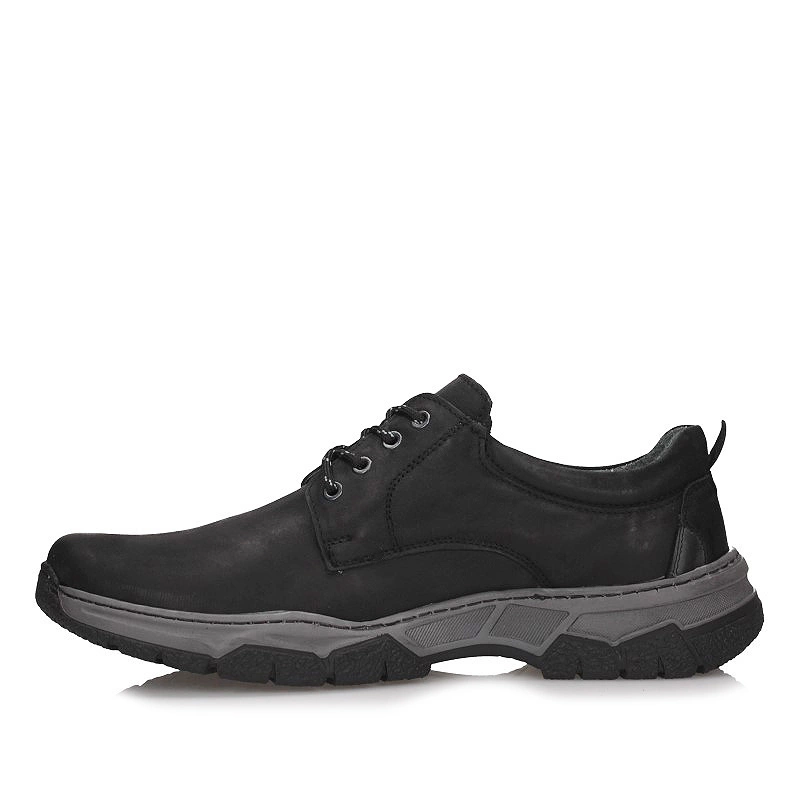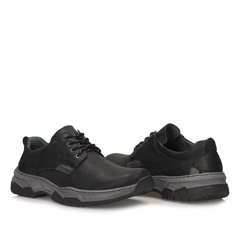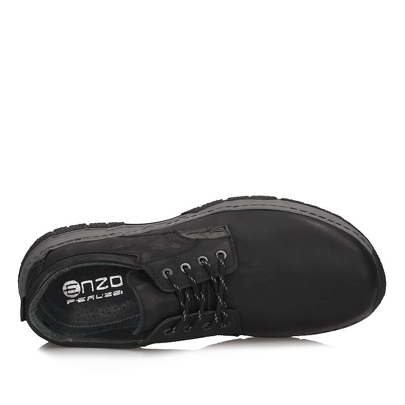 Znana marka ENZO przedstawia nam półbuty z najnowszej jesienno-zimowej kolekcji. Cholewka wykonana z wysokiej jakości skóry naturalnej licowej w kolorze klasycznej czerni. Model posiada sznurowanie co pozwoli dopasować je do różnej tęgości stopy. Wnętrze wyściełane zostało naturalną skórą, która zapewni poczucie świeżości na wiele godzin. Na zewnętrznej stronie obuwia producent umieścił dodatkowo logo firmy. Podeszwa wykonana z wysokogatunkowego tworzywa sztucznego z właściwościami antypoślizgowymi. Obuwie dzięki klasycznej kolorystyce będziemy mogli dopasować do wielu stylizacji.