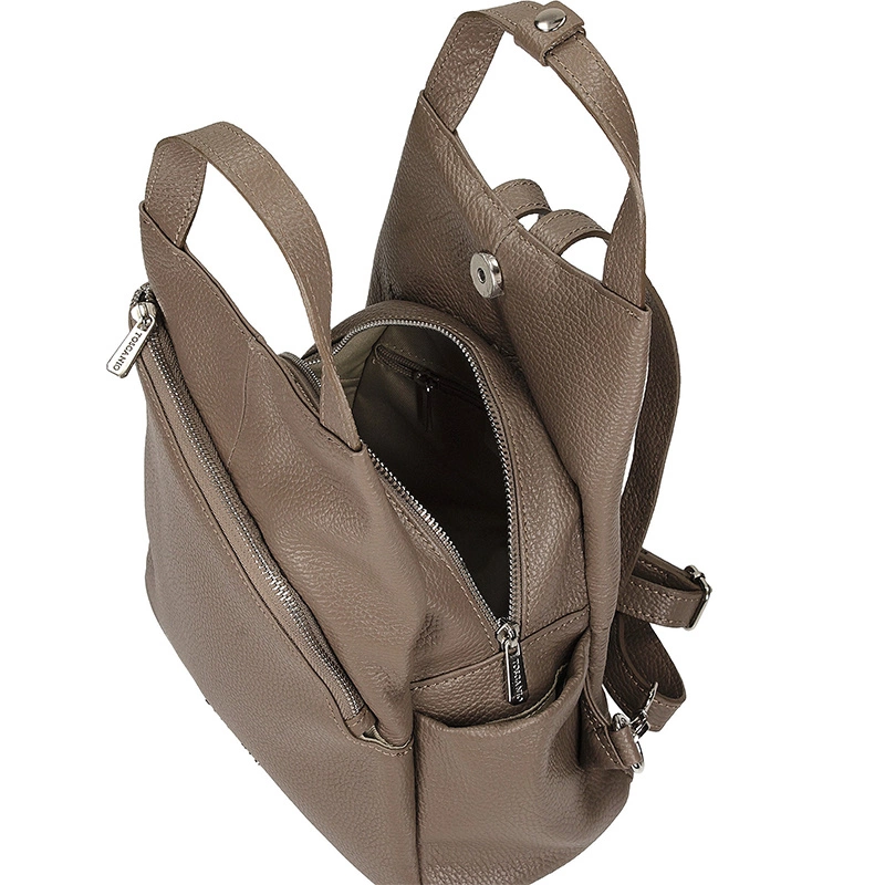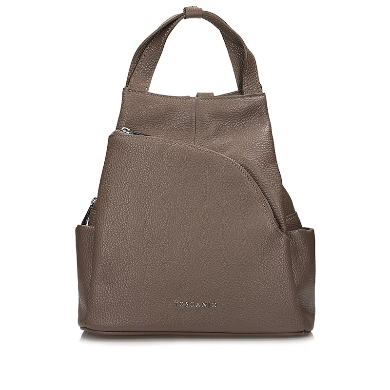 Znana i lubiana marka Toscanio przedstawia nam plecak z najnowszej kolekcji jesienno-zimowej. Plecak został wykonany z wysokiej jakości skóry naturalnej licowej w kolorze beżu. Model ten posiada jedną główną komorę wyposażona w dwie kieszonki z czego jedna z nich jest zapinana na zamek błyskawiczny. Fason jest zapinany na zamek błyskawiczny oraz dodatkowo na magnes. Plecak został wyposażony z przodu jak i z tyłu w kieszonki zapinane na zamek. Po bokach dodatkowo umieszczono kieszonki. Model posiada rączki zabezpieczone zatrzaskiem. Plecak posiada regulowane szelki dołączone od producenta.