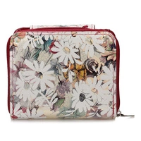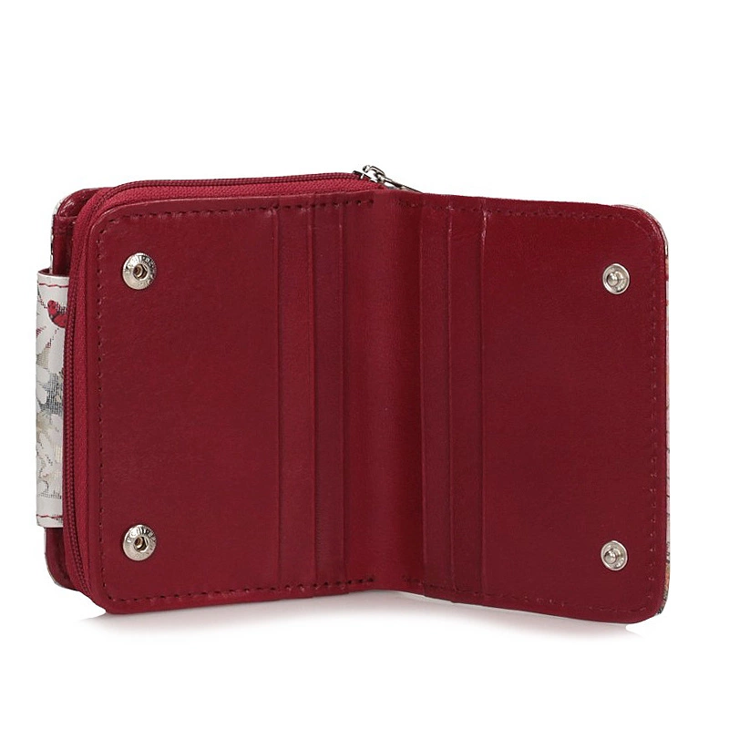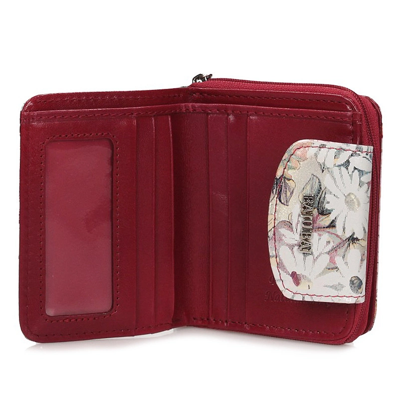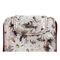 Marka Baju Baj prezentuje najnowszy model portfela damskiego. W całości został on wykonany z naturalnej skóry w białym odcieniu. Model ten zapinany na zatrzask. W środku znajdziemy miejsce na karty oraz na banknoty. Kieszeń na bilon zapinana na zamek. W środku tej kieszeni również znajdziemy miejsce na karty. Całość przyozdobiona oryginalnym kwiatowym motywem.