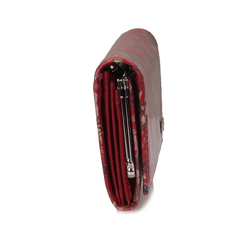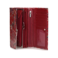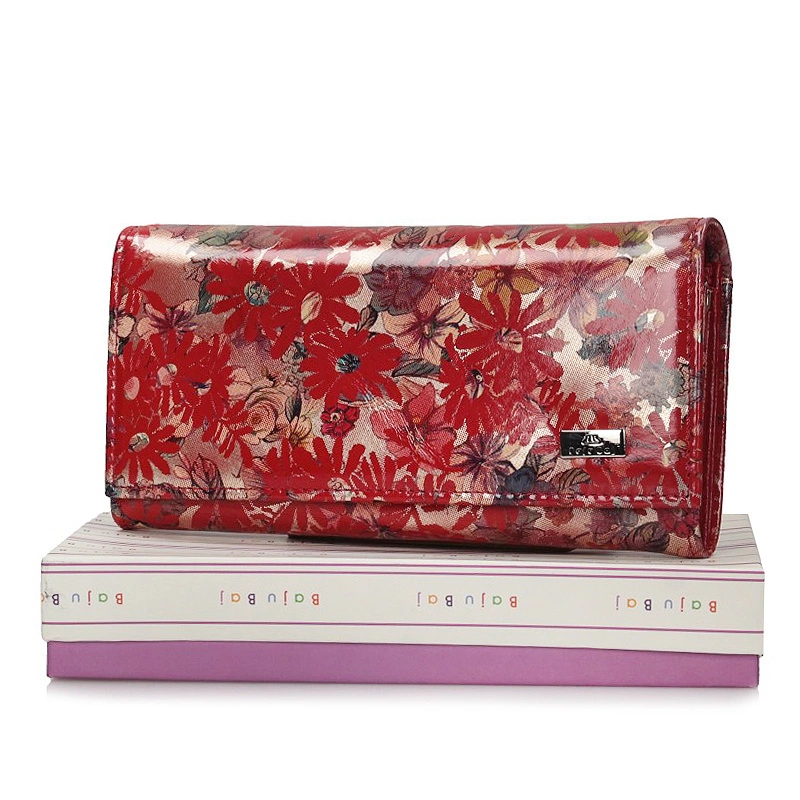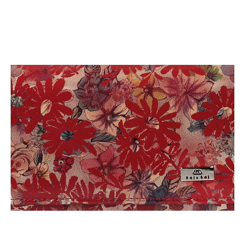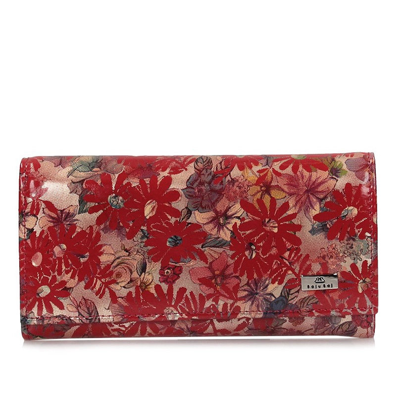 Portfel damski przygotowała dla nas marka Baju Baj z najnowszej kolekcji. Model w kolorze czerwonym ozdobiony został kolorowym kwiatowym wzorem. Fason wykonany w całości został z najwyższej jakości skóry naturalnej, zapinany na zatrzask. Wewnątrz posiada kieszonkę zapinaną na bigiel przeznaczoną na bilon, przegrody na karty i na fotografię, przegródki na banknoty i dokumenty. Na przodzie portfela umieszczono małe logo marki. Portfel spodoba się Paniom w każdym wieku i świetnie sprawdzi się jako prezent.