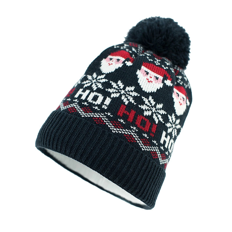 Świąteczna czapka ze świętym Mikołajem, która wszystkich wprowadza w świąteczny nastrój. Lekko elastyczna, dobrze przylega do głowy. Sprawdzi się na zimowe spacery. Uroku dodaje jej pompon. Świetnie sprawdzi się ze świątecznymi swetrami!