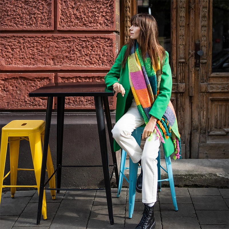 Ten model, to szal stworzony dla wszystkich zmarzluchów. Jest niezwykle puchaty, i przyjemny w dotyku. Można go używać również jako narzutki, do ogrzania się w domowym zaciszu. Bardzo efektowny i niepowtarzalny.