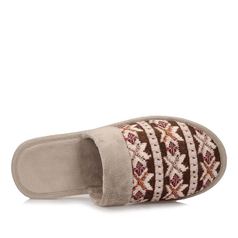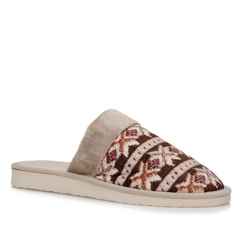 Znana marka Meteor przedstawia nam nowe kapcie domowe z najnowszej kolekcji jesienno-zimowej. Model ten został wykonany z miękkiej i przyjaznej dla stóp tkaniny w kolorze beżowym. Na cholewce znajduję się ciekawy i kolorowy nadruk. Nosek zaokrąglony, co umożliwia swobodne rozłożenie palców. Podeszwa trwała, odporna na ścieranie.