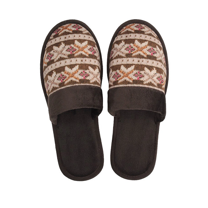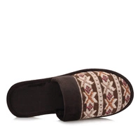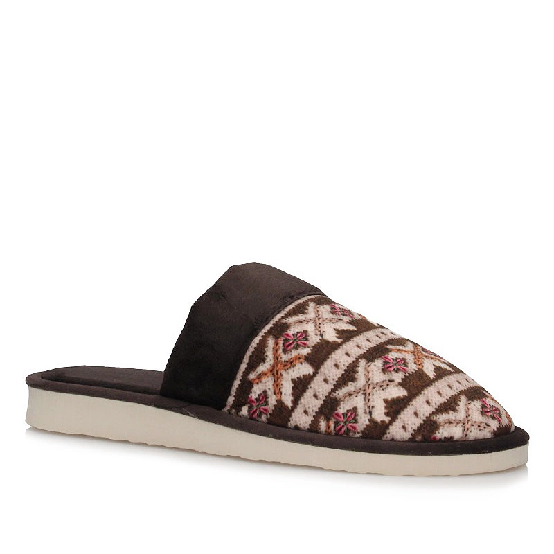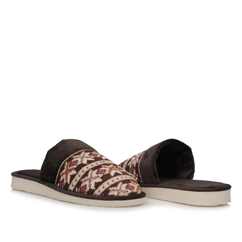 Znana marka Meteor przedstawia nam nowe kapcie domowe z najnowszej kolekcji jesienno-zimowej. Model ten został wykonany z miękkiej i przyjaznej dla stóp tkaniny w kolorze brązowym. Na cholewce znajduję się ciekawy i kolorowy nadruk. Nosek zaokrąglony, co umożliwia swobodne rozłożenie palców. Podeszwa trwała, odporna na ścieranie.