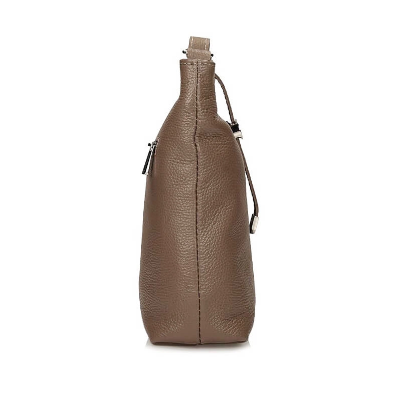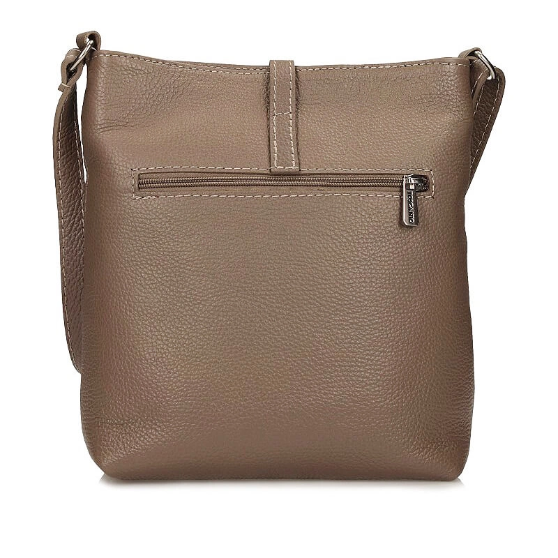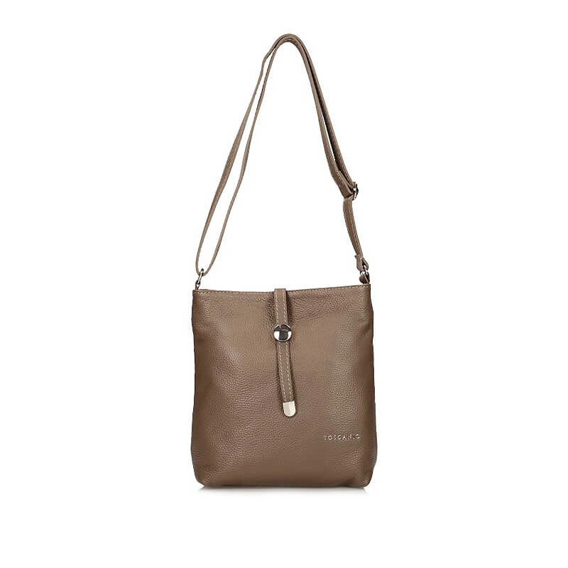 Znana oraz lubiana marka Toscanio przedstawia nam listonoszkę z najnowszej kolekcji. Model w kolorze beżowym wykonany został z wysokiej jakości skóry naturalnej. Fason jednokomorowy zapinany na wygodny w użytkowaniu zamek. Dodatkową praktyczną ozdobą jest pasek którym można zabezpieczyć otwór torebki. Dodatkowo z tyłu znajduje się kieszonka na zamek, idealnie sprawdzi się na kobiece drobiazgi. Na przodzie znajduje się logo marki. Dzięki długiemu paskowi z możliwością regulacji możemy dopasować torebkę do naszych potrzeb. Ciekawy model torebki z pewnością spodoba się Paniom w każdym wieku.