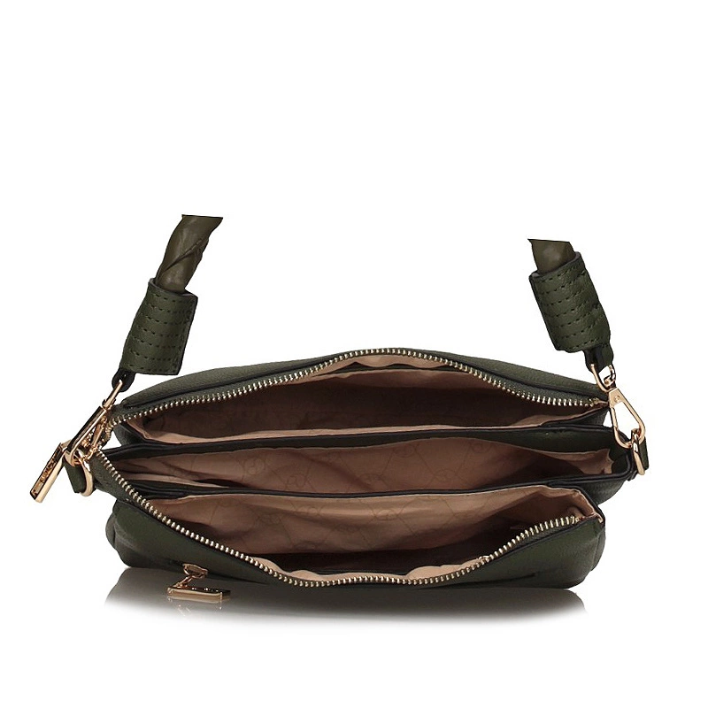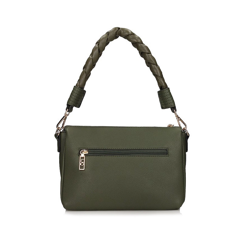 Torebkę z najnowszej kolekcji jesienno-zimowej prezentuje nam lubiana marka Nobo. Fason został wykonany z wysokogatunkowej skóry ekologicznej licowej w zielonym odcieniu. Jednokomorowa zapinana na wygodny w użytkowaniu zamek. Wewnątrz mieszczą się trzy duże kieszenie, mała kieszeń na zamek oraz organizer. Z tyłu torebki znajduje się kieszeń na zamek. Producent dołączył regulowany pasek, który dostosuje się do naszych potrzeb.