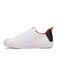Znana oraz renomowana marka Rieker przedstawia półbuty z najnowszej kolekcji wiosenno-letniej. Cholewka danego modelu wykonana została z najwyższej jakości skóry ekologicznej licowej w białym kolorze. Wnętrze buta wyściełane zostało przyjemną dla stóp tkaniną. Model posiada sznurowanie, które pozwoli nam na dopasowanie obuwia do tęgości naszych stóp. Po zewnętrznej stronie producent umieścił również zamek, co dodatkowo przyczyni się do łatwiejszego zdejmowania oraz zakładania obuwia. Podeszwa wykonana została z wysokogatunkowego tworzywa sztucznego. Model będzie idealnym wykończeniem niejednej wiosennej stylizacji.