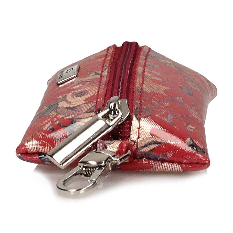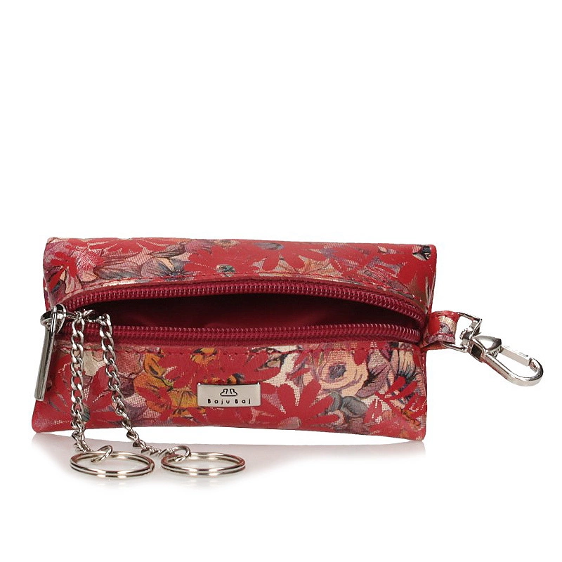 Znana oraz lubiana marka Baju Baj przedstawia nam etui na klucze z najnowszej kolekcji. Model wykonany z najwyższej jakości skóry naturalnej licowej w czerwonym kolorze z ciekawym kwiatowym wzorem. Zapinane na zamek. Wewnątrz posiada dwa kółeczka z łańcuszkami do przypięcia kluczy. Zewnętrzny karabińczyk umożliwia dopięcie etui w dowolnym dla nas miejscu. Wewnątrz etui wyściełane tkaniną.