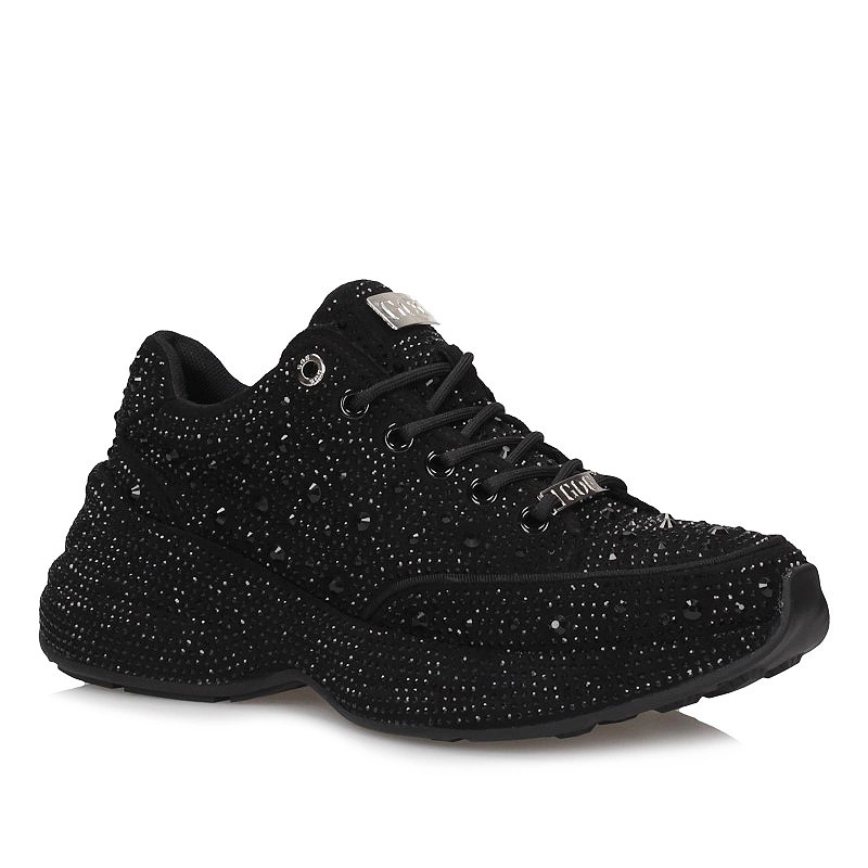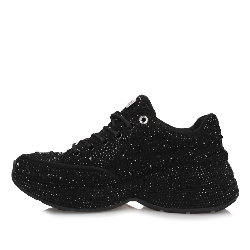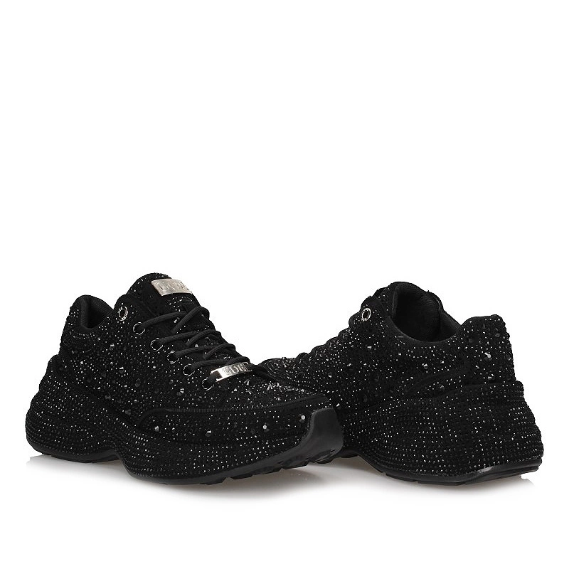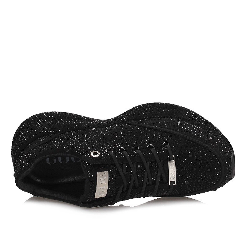 Znana marka Goe przedstawia nam sneakersy damskie z najnowszej kolekcji wiosennej. Model ten został wykonany w kolorze czarnym z materiału tekstylnego. Miękka, czarna wkładka zapewni wygodę oraz komfort podczas użytkowania. Sznurowanie na 6 dziurek pozwoli na dopasowanie się obuwia do różnej tęgości kobiecej stopy. Mieniące się cekiny umieszczone na całej cholewce oraz podeszwie dodają obuwiu oryginalnego wyglądu. 6 centymetrowa platforma z wysokogatunkowego tworzywa odpornego na ścieranie. Sneakersy te idealnie przypadną do gustu Panią, które cenią sobie oryginalność i wygodę.