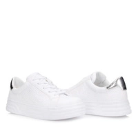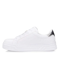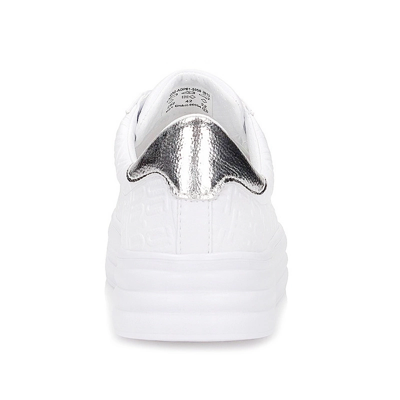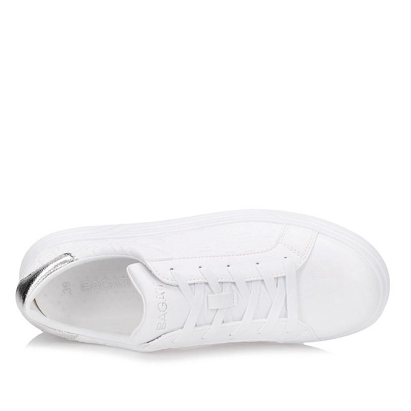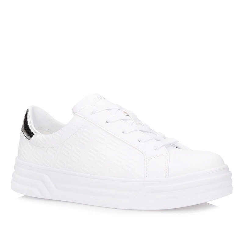 Marka Baggat przedstawia nam nowy model półbutów damskich w nadchodzącym sezonie. Sneakersy wykonano z najwyższej jakości skóry ekologicznej licowej w kolorze białym. Wnętrze zostało wyściełane przyjemną dla stóp tkaniną. Miękka wkładka zapewni wygodę podczas codziennego użytkowania. Model sznurowany na 5 dziurek co pozwala na dopasowanie obuwia do różnej tęgości stopy. Trwała podeszwa została wykonana z wysokiej jakości tworzywa sztucznego. Wytłoczone logo firmy na cholewce oraz srebrna wstawka na pięcie dodają obuwiu nietuzinkowego wyglądu.