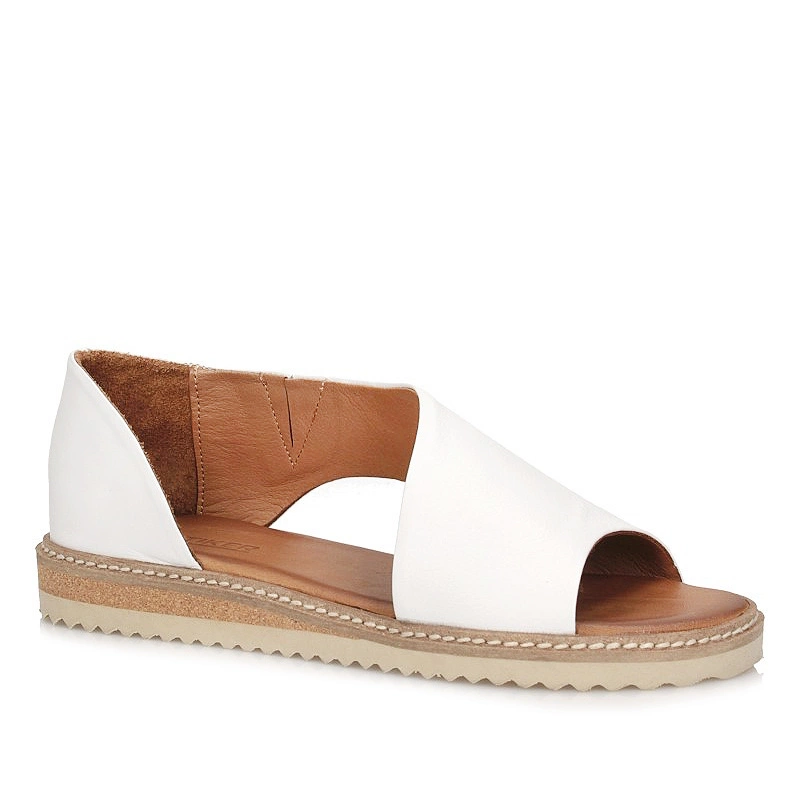 Marka Artiker przedstawia nam sandały damskie z najnowszej kolekcji wiosenno-letniej. Cholewka obuwia została wykonana z skóry naturalnej licowej  w kolorze bieli. Wkładka wykonana została z delikatnej i miękkiej dla stóp skóry naturalnej. Sandałki wsuwane, co umożliwia na jego bezproblemowe zakładanie. Podeszwa wykonana z trwałego tworzywa sztucznego. Sandałki świetnie dopasujemy do stylizacji z sukienkami jak i z jeansami.