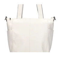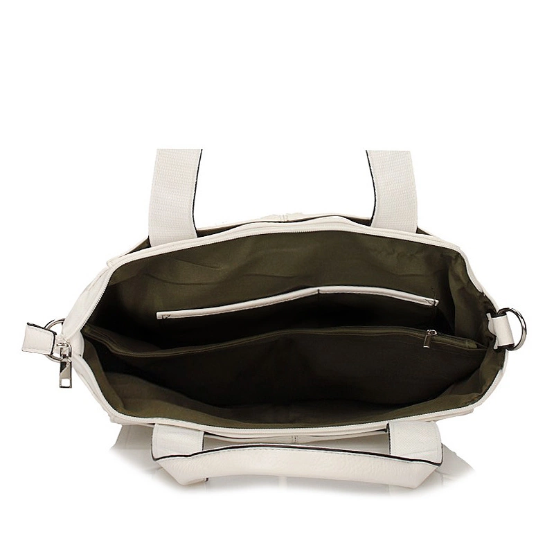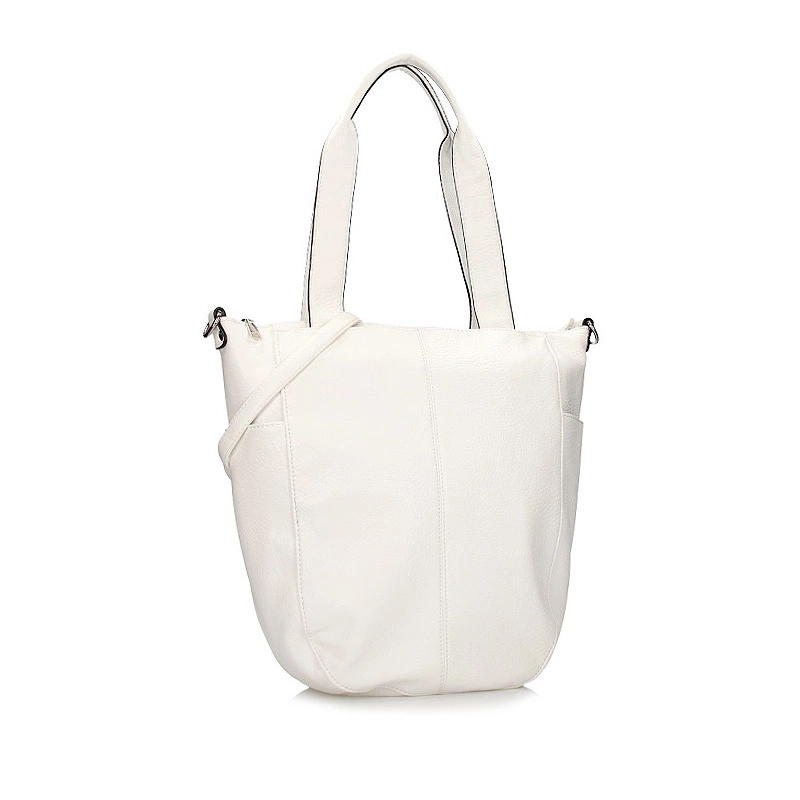 Najnowszy model torebki damskiej,  wykonana została z najwyższej jakości skóry ekologicznej licowej w odcieniu białym. Jednokomorowa, wewnątrz kieszonka zapinana na zamek. Z boku  małe kieszonki bez zamka, które pomieszczą kobiece drobiazgi. Model zapinany na wygodny w użytkowaniu zamek. Torebka pojemna i funkcjonalna pomieści format A4. Dwa wygodne uchwyty.  Kolor dopasuje się do wielu letnich stylizacji.