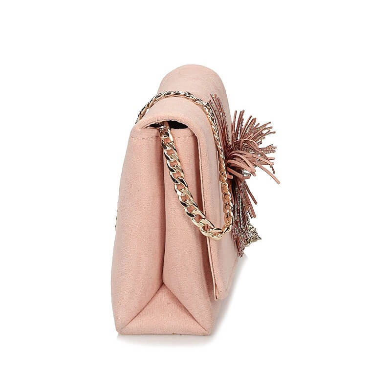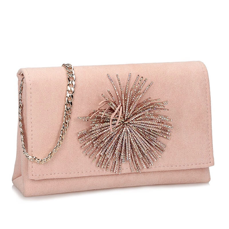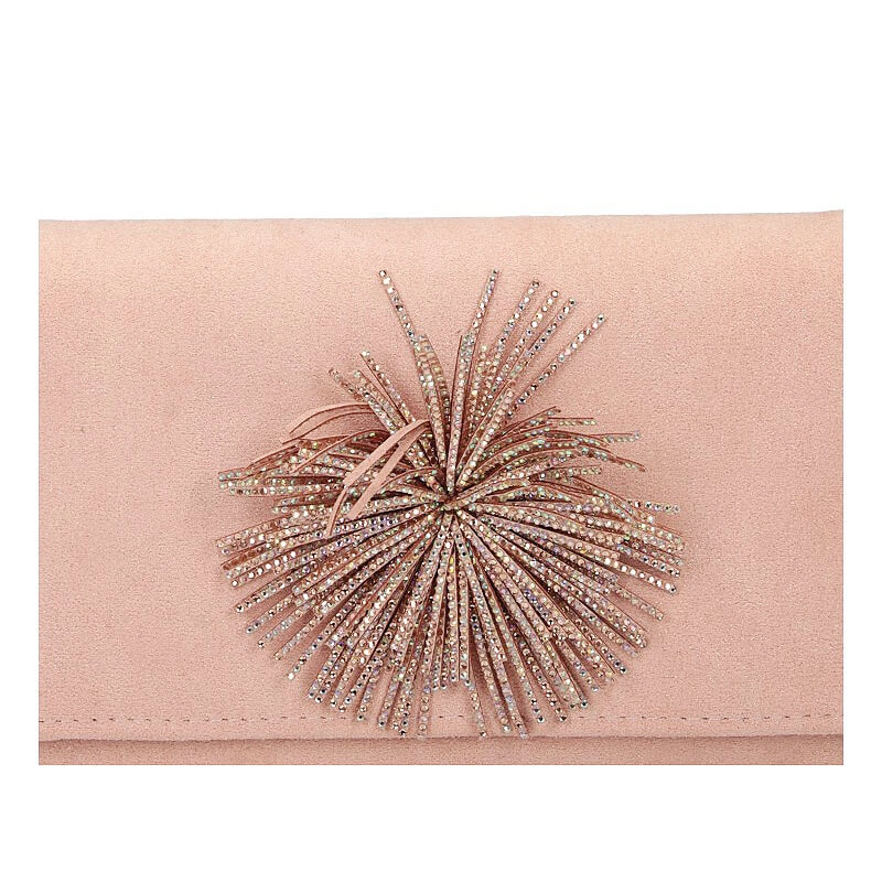 Elegancki model torebki Menbur to propozycja na najnowszy sezon. Torebka wykonana z wysokogatunkowej tkaniny w delikatnym kolorze złoto-różowym. Torebka dwukomorowa, wyściełana podeszwą. Całość zapinana na klapkę z magnesem, która dodatkowo została ozdobiona delikatnie mieniącymi się cekinami. Możliwość noszenia na ramieniu, jako listonoszki lub po schowaniu łańcuszka jako podręczna kopertówka. Uzupełnienie wielu eleganckich stylizacji.