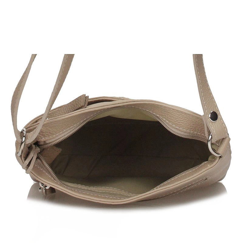 Lubiana i ceniona włoska marka Toscanio przedstawia nam nowy model torebki z najnowszej kolekcji wiosenno-letniej. Wykonana została z najwyższej jakości skóry naturalnej w kolorze beżowym. Torebka jednokomorowa zapinana na zamek. Z przodu oraz z tyłu znajdują się dodatkowe praktyczne kieszonki na telefon czy też klucze oraz kobiece drobiazgi. Model, który świetnie sprawdzi się w codziennych stylizacjach