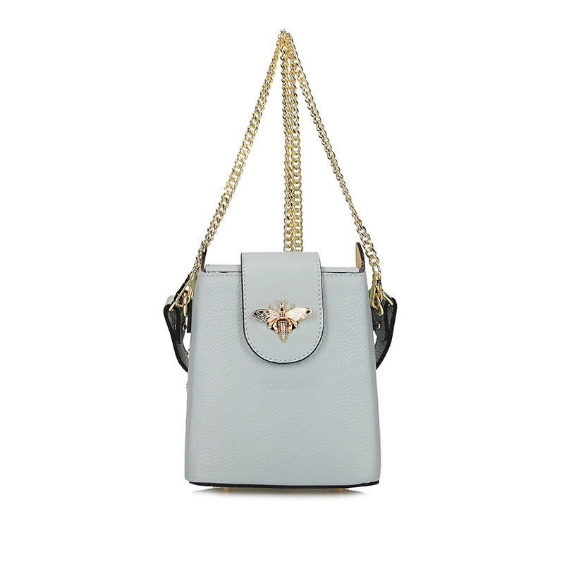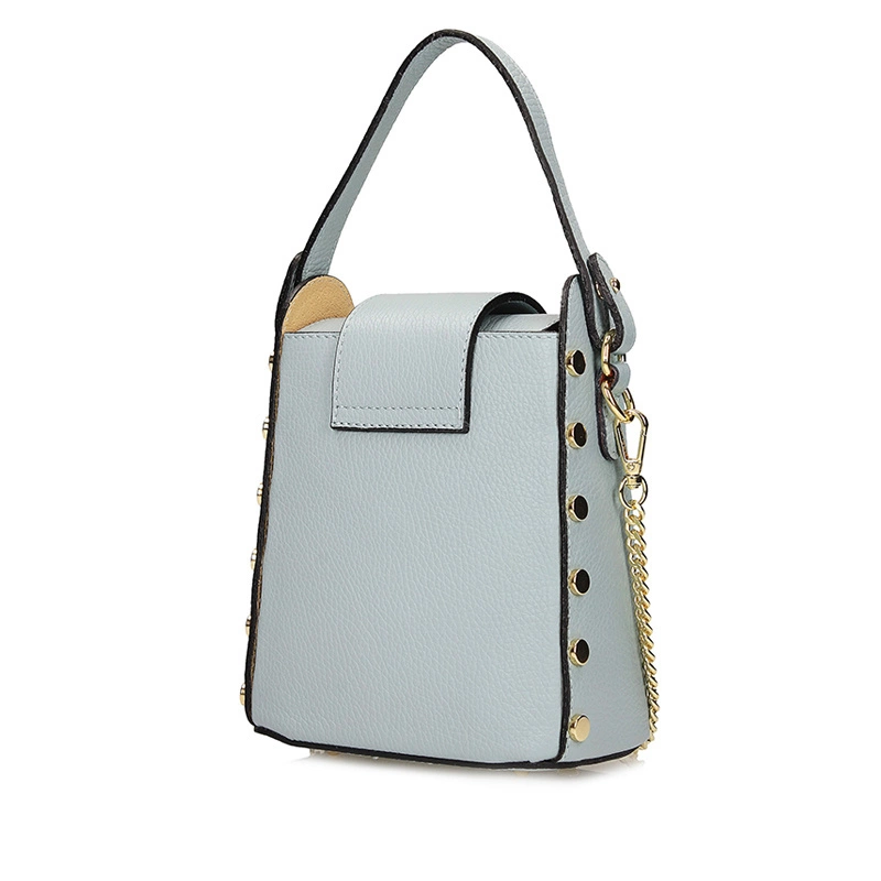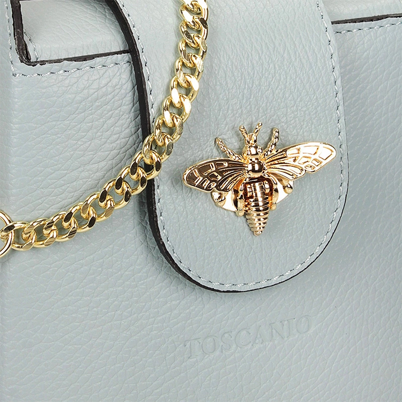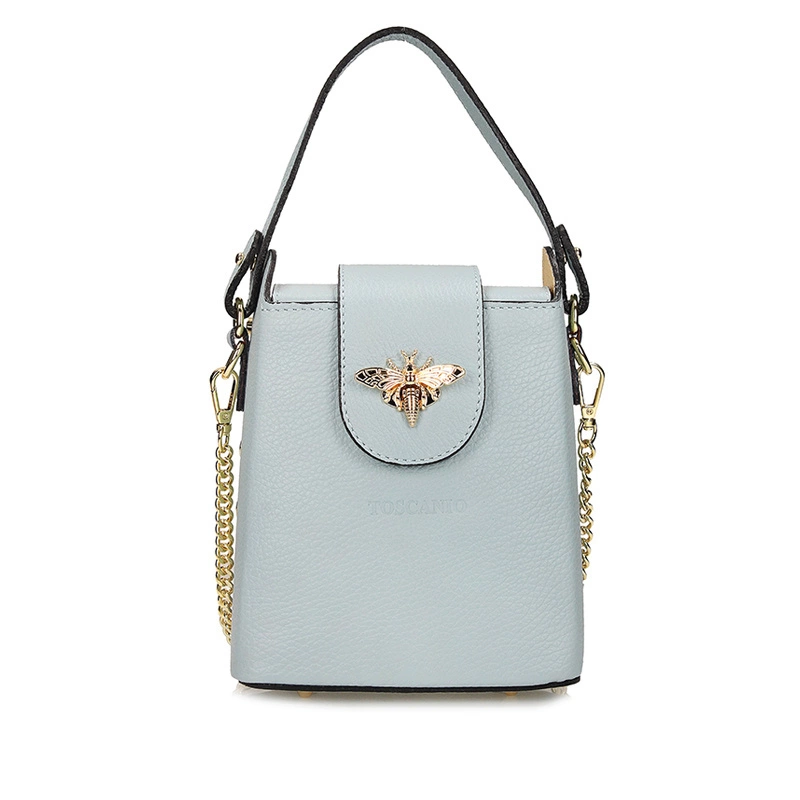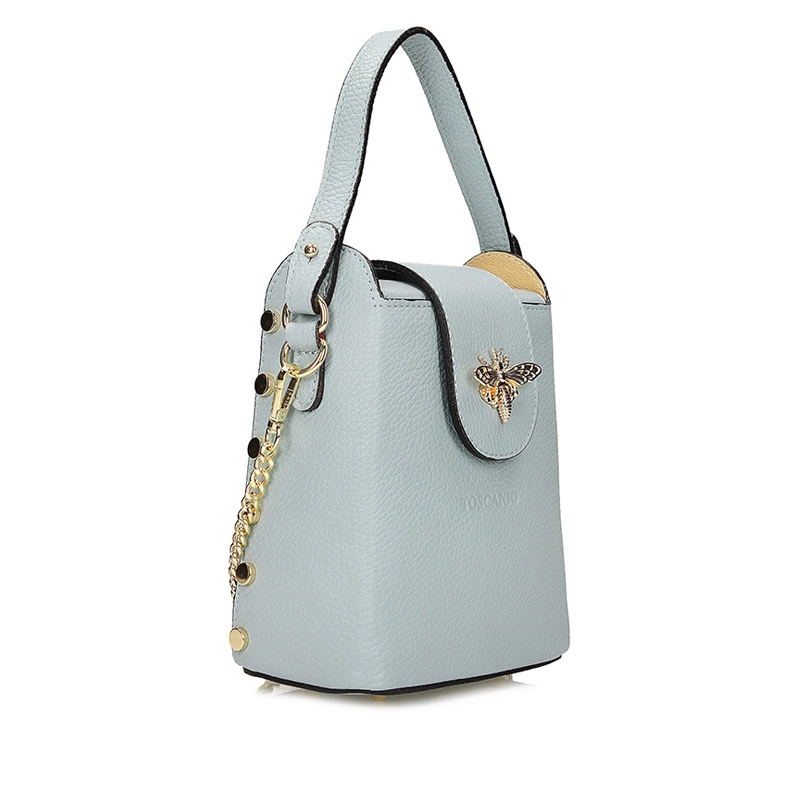 Znana oraz lubiana włoska marka Toscanio prezentuje nam model kuferka z najnowszej kolekcji wiosna - lato. Torebka wykonana została z najwyższej jakości skóry naturalnej licowej w pięknym niebieskim kolorze. Oryginalne zapięcie podkreśla urok torebki. Kuferek jest na małym pasku, ale także został dołączony długi łańcuch, który można również odpiąć. Dopasuje się do wielu kobiecych stylizacji. Wymiary: szerokość 14 cm , wysokość 16 cm