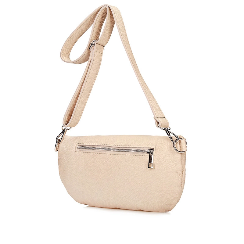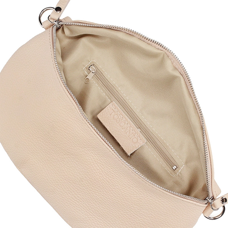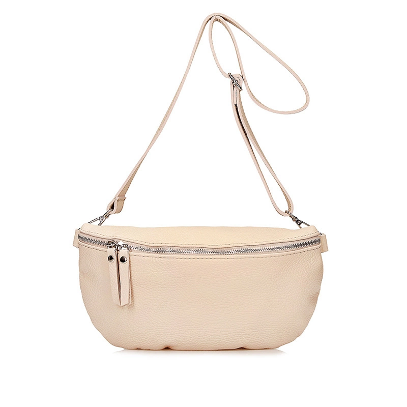 Włoska marka Toscanio stworzyła praktyczną nerkę ze skóry naturalnej w różowym odcieniu. Model zapinany na zamek, wyposażona w dodatkowe kieszonki, pozwalające na przechowanie kobiecych drobiazgów. Posiada możliwość regulacji