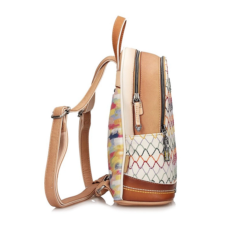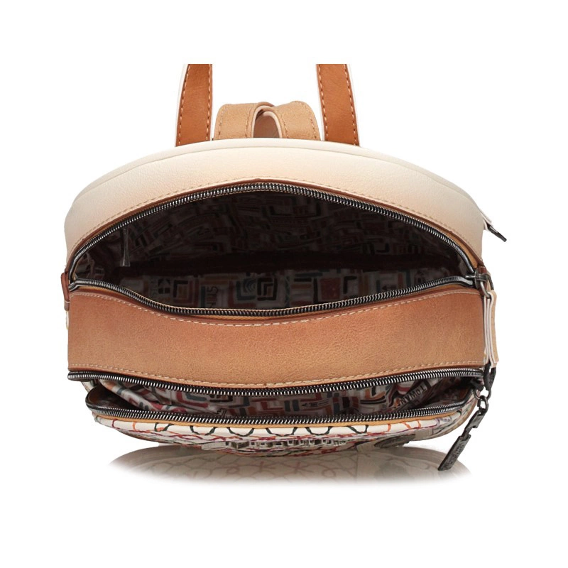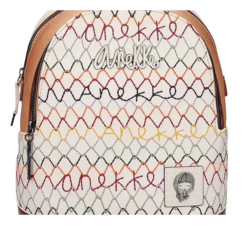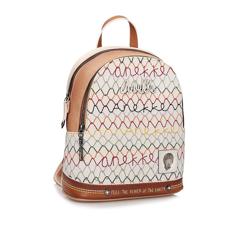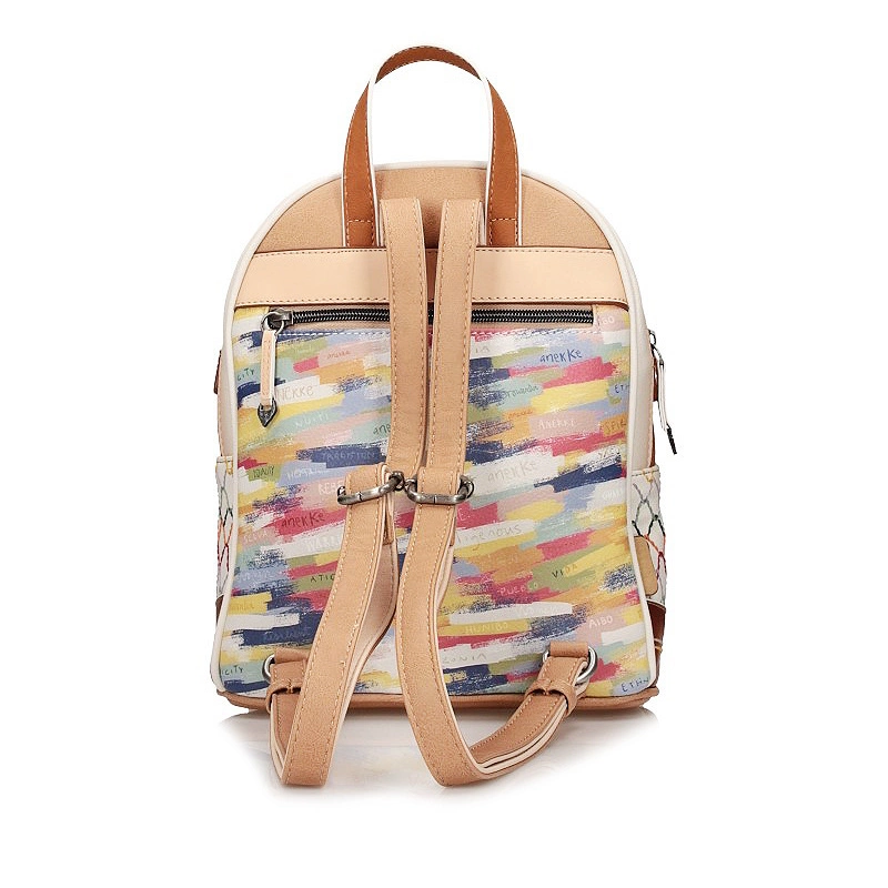 Marka Anekke przedstawia nam plecak damski kolekcja wiosenno-letnia. Model ten jest częścią kolekcji Anekke Menire będącej hołdem dla rdzennych kobiet. Torebka została wykonana z skóry ekologicznej, w odcieniu brązu. Model ten charakteryzuje się tym, że łączy podstawę w odcieniu załamanej bieli, która posiada motyw siatki w różnych kolorach. Tył plecaka posiada kolorowy nadruk pędzla, w którym można odczytać niektóre napisy. Wnętrze wyłożone oryginalną tkaniną z nadrukiem motywów z kolekcji. Model ten jest dwukomorowy, posiada organizer na kobiece drobiazgi oraz jedną kieszeń wewnątrz oraz kieszonkę na zamek z tyłu torebki. Ten plecak idealnie przypadnie do gustu wielu paniom.