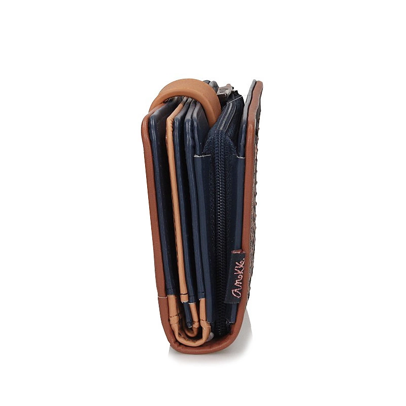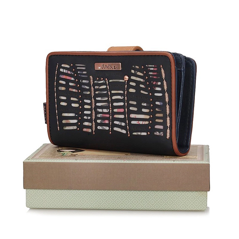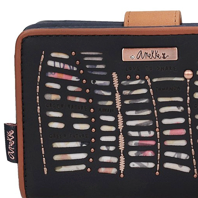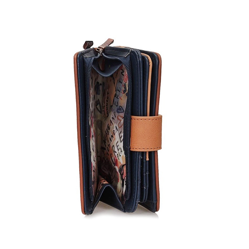 Hiszpańska marka Anekke przedstawia portfel z najnowszej kolekcji. Fason w całośći wykonany z najwyższej jakości skóry ekologicznej w odcieniach granatu i brązu. Model ten posiada ochronę RFID: innowacyjny system ochrony, który chroni nasze karty. Portfel zdobiony nietuzinkowymi i oryginalnymi nadrukami.
