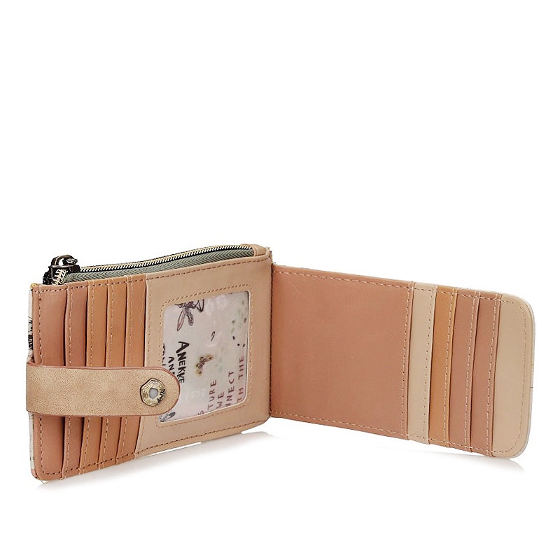 Hiszpańska marka Anekke przedstawia nam mały portfel na karty. Portfel jest bardzo praktyczny i wszędzie się zmieści. Został wykonany ze skóry ekologicznej licowej. Portfel jest wykonany w takich kolorach jak beż, brąz, zieleń i wielokorowy. Jest zapinany na zatrzask co ułatwi swobodne otwieranie i zamykanie. Portfel ma 10 przeróbek na karty i miejsce na zdjęcie, z tyłu znajduje się małą kieszeń na np., drobne pieniądze.