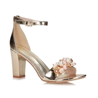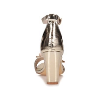 Marka Sabatina przedstawia nam czółenka damskie na nadchodzący sezon z najnowszej wiosenno-letniej kolekcji. Cholewka w całości wykonana z najwyższej jakości skóry ekologicznej w pięknym złotym odcieniu. Model obuwia posiada zapięcie na sprzączkę wokół kostki, które umożliwia idealne dopasowanie obuwia do tęgości stopy. Wnętrze wyściełano delikatną dla stóp wkładką ze skóry naturalnej zapewniająca wygodę oraz komfort podczas całodziennego użytkowania. Nosek odkryty lekko uniesiony ku górze pozwoli na swobodne rozłożenie palców. Fason posiada zdobienie dzięki czemu dodaje obuwiu nietuzinkowego wyglądu. Osadzony na 9 centymetrowym obcasie. Podeszwa wykonana z wysokogatunkowego tworzywa sztucznego odpornego na ścieranie. Obuwie sprawdzi się do wielu kobiecych stylizacji.