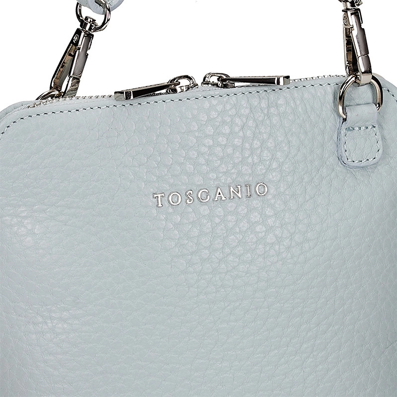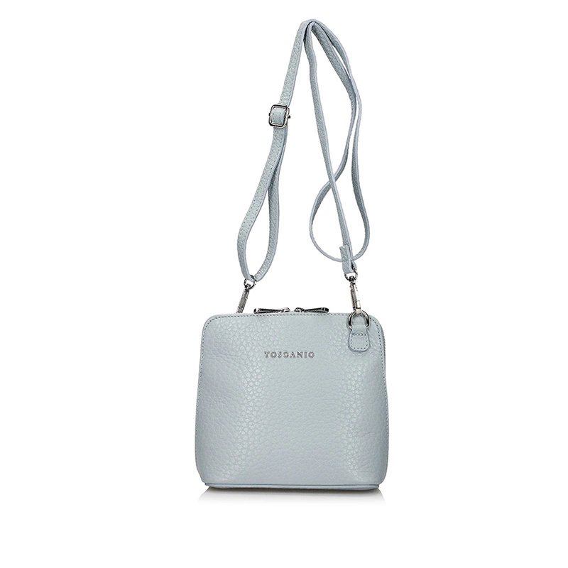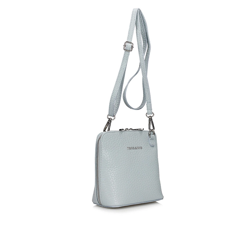 Znana oraz lubiana marka Toscanio przedstawia nam torebkę listonoszkę z najnowszej kolekcji. Model w błękitnym kolorze wykonany został z wysokiej jakości skóry naturalnej. Fason w środku torebki ma dwie komory w tym środkową na zamek, idealnie sprawdzi się na kobiece drobiazgi. Z tyłu umieszczono małą kieszonkę także zapinaną na zamek. Dzięki długiemu regulowanemu paskowi możemy dopasować noszenie jej do naszych potrzeb. Wymiary: wysokość 15 cm, szerokość 19 cm, szerokość podstawy 16,5 cm
