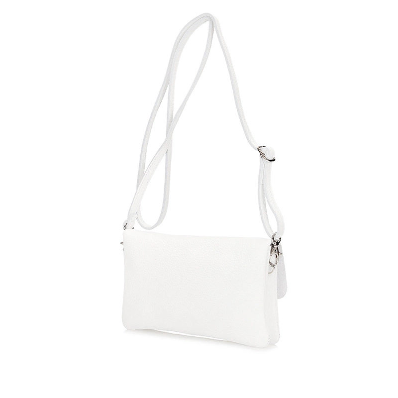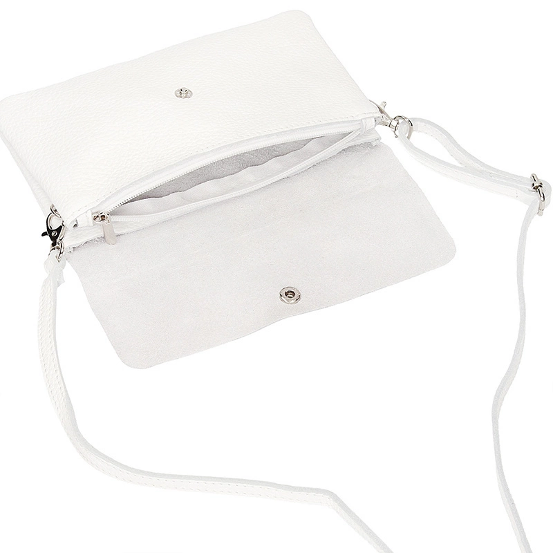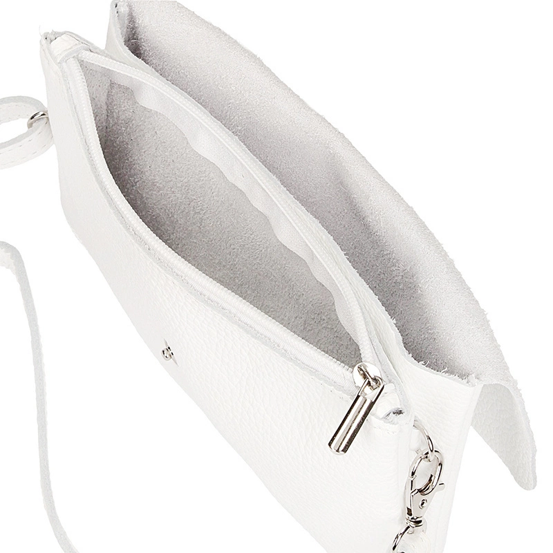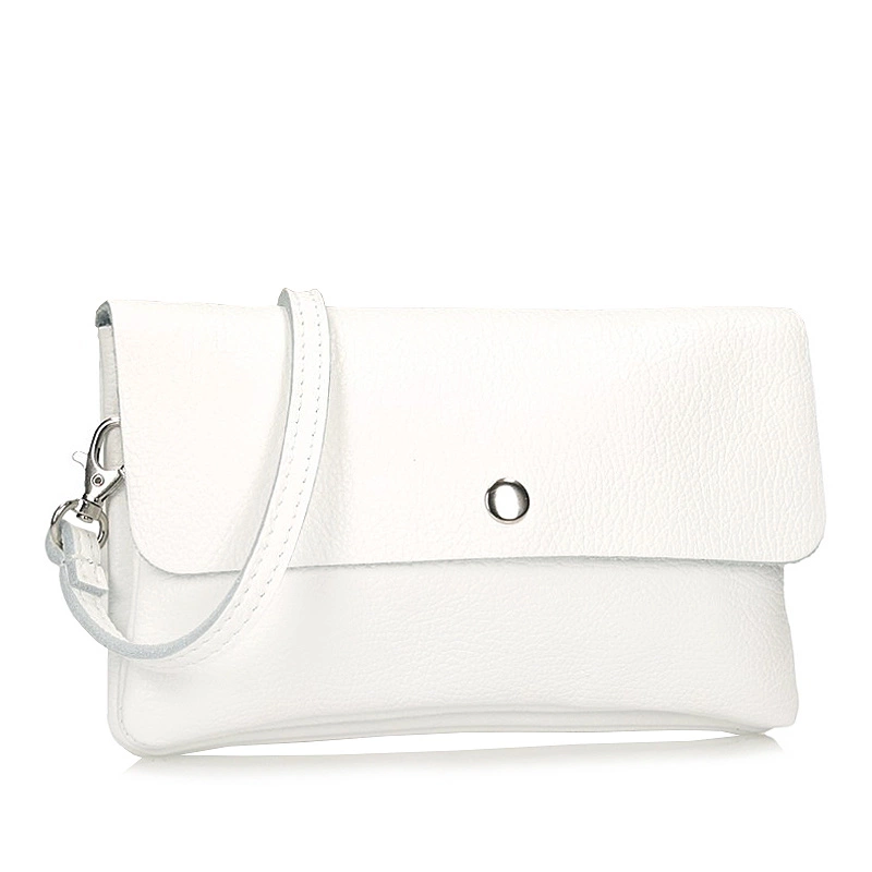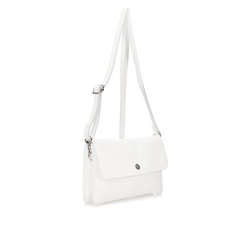 Świetny model listonoszki damskiej od lubianej włoskiej marki Toscanio z najnowszej kolekcji. Torebka wykonana została z najwyższej jakości skóry naturalnej licowej w klasycznym kolorze białym. Jednokomorowa, zapinana na wygodny w użytkowaniu zamek. Całość zapinana klapką z ozdobnym zatrzaskiem, który dodaje wyjątkowego i klasycznego wyglądu. Torebka posiada krótki i odczepiany pasek. Model wpadnie w oko wielu Paniom i świetnie dopasuje się do wielu letnich stylizacji.