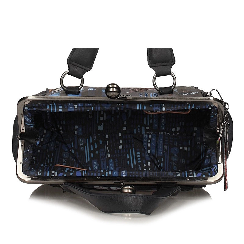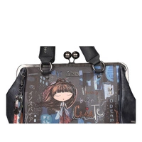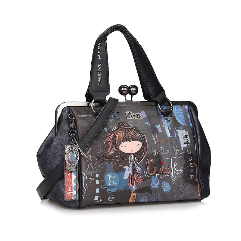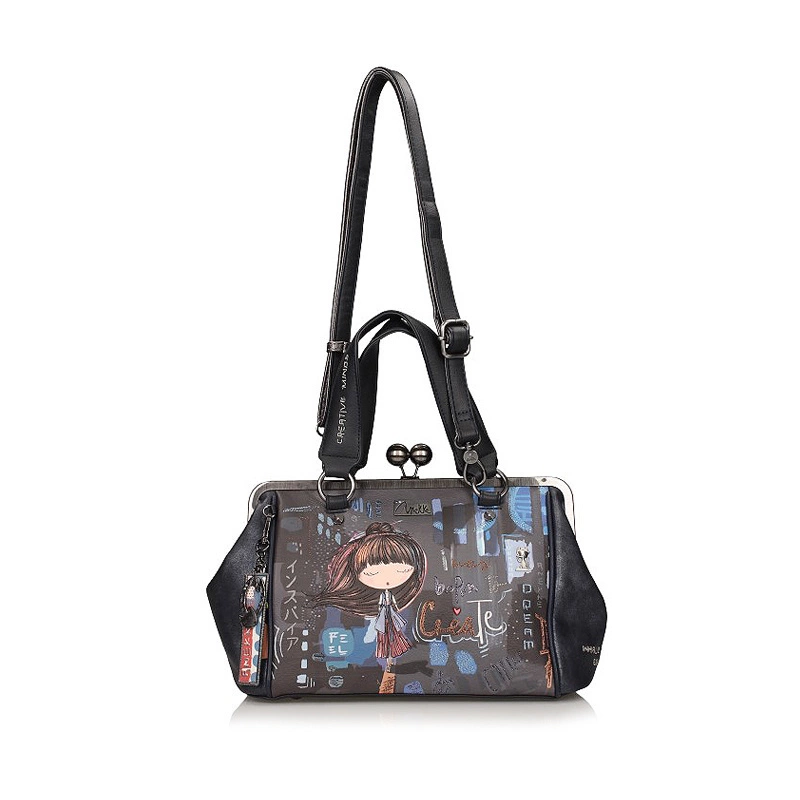 Torebka z najnowszej kolekcji hiszpańskiej marki Anekke Contemporary. W tej limitowanej edycji laleczka porusza się po nowoczesnej Japonii pełnej sztuki, świateł oraz niezapomnianych kolorów. Model jednokomorowy, zapinany na efektowny bigiel. Wykonana z wysokiej jakości skóry ekologicznej. Wewnątrz torebki została umieszczona kieszonka zapinana na zamek oraz organizer. Model wyposażony w dwie wygodne w użytkowaniu rączki oraz dodatkowy pasek, co umożliwi noszenie torebki na ramieniu. Na tyle torebki znajdziemy dodatkową kieszeń zapinaną na zamek. Piękne przeszycia, dodatki takie jak brelok czy metalowe logo marki sprawiają, że model ten jest niezwykle oryginalny.