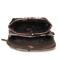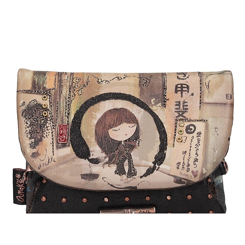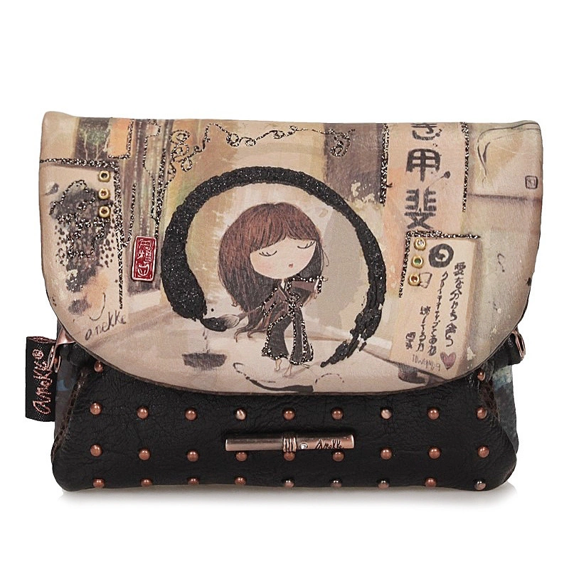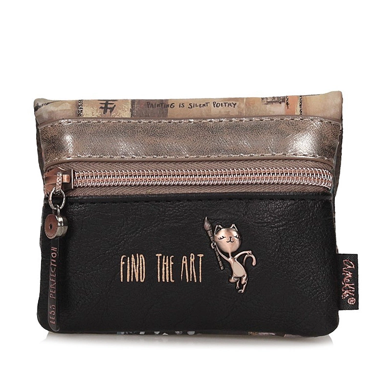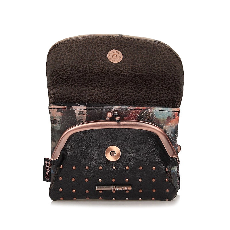Zapraszamy w podróż po Japonii z mała portmonetką Anekke będącej częścią kolekcji Shoen inspirowaną twórczością japońskiej artystki Uemury Shōen, pionierki w świecie sztuki, której udało się sprawić, że malarstwo stało się zawodem dla kobiet. Model został wykonany z skóry ekologicznej licowej w odcieniu brązu. Model otwierany na magnes. W środku znajdują się jedna kieszeń na bilion, a druga zapinana na bigiel, w której możemy umieścić monety. Dodatkowo producent umieścił kieszonkę z tylu zapinana na zamek. Całe wnętrze wyłożone tkaniną nawiązująca do kolekcji.