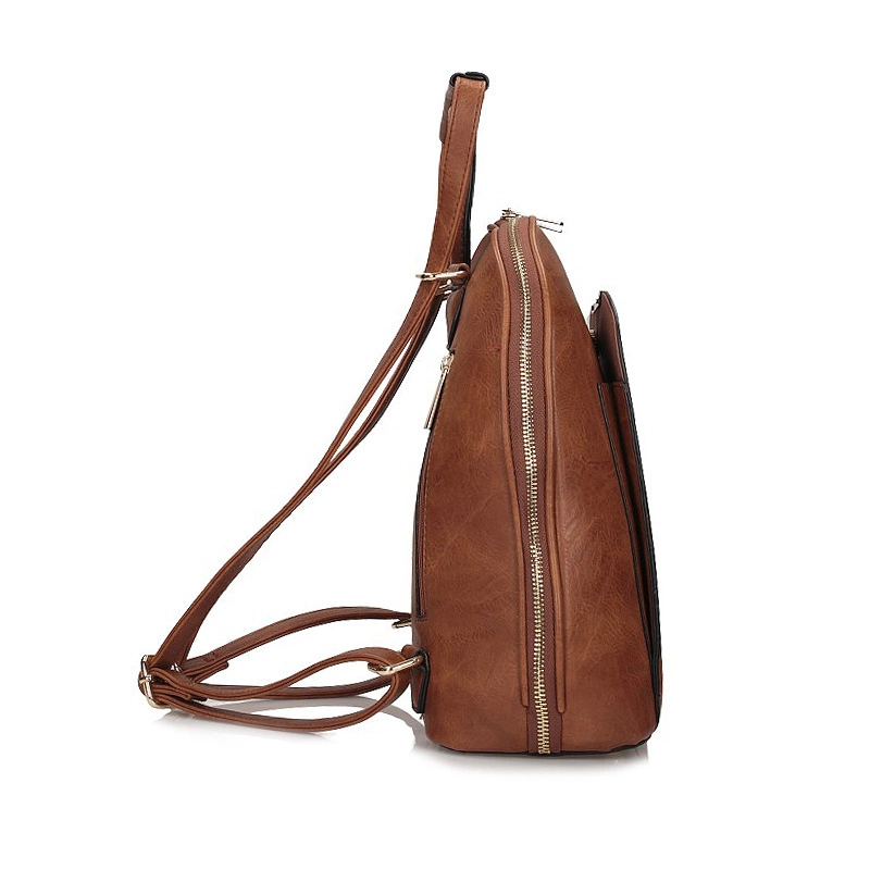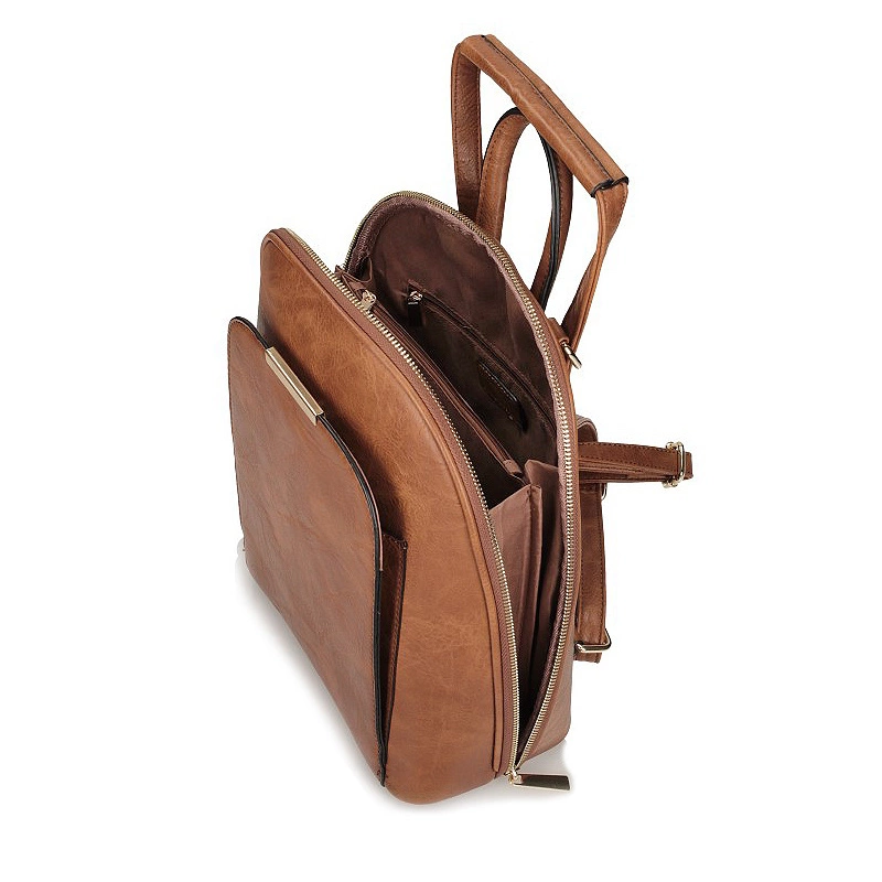 Paolo Bags przedstawia plecak z najnowszej kolekcji jesienno-zimowej. Model został wykonany z skóry ekologicznej licowej w odcieniu pięknego brązu. Plecak dwukomorowy, posiadający wewnątrz kieszonkę oraz mały organizer. Na przodzie jak i w tyle zostały umieszczone kieszonki co nadaje plecakowi oryginalnego wyglądu. Model ten można nosić w ręku jak i na plecach za pomocą regulowanego paska.