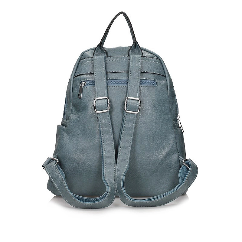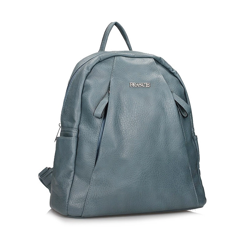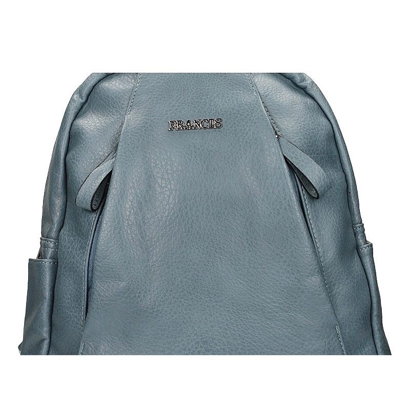 Znana marka Frances przedstawia nam plecak w kolorze błękitnym. Plecak jest jednokomorowy, posiadający również w środku kieszonkę oraz na zewnątrz na środku plecaka. Materiał zewnętrzny wykonany został ze skóry ekologicznej licowej. Plecak posiada z boku kieszonkę do której można włożyć różne drobiazgi. Model ten można nosić w ręku jak i na plecach za pomocą regulowanych szelek.