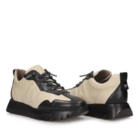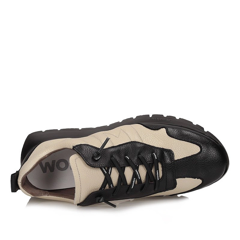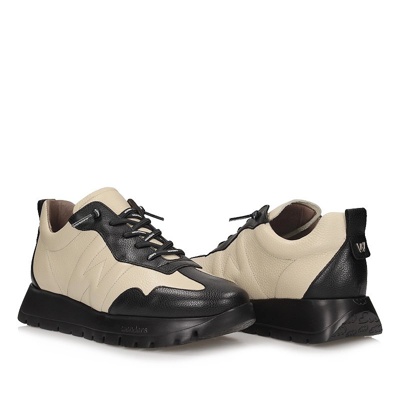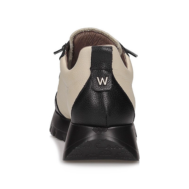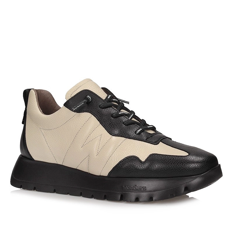 Znana oraz ceniona hiszpańska marka Wonders prezentuje nowy model półbutów damskich z najnowszej kolekcji jesienno-zimowej. Wzrok przyciąga oryginalna cholewka, która została wyprodukowana ze skóry naturalnej licowej oraz wysokiej jakości materiału tekstylnego. Wewnątrz wyściełane również jasną skórą naturalną. Miękka wkładka zapewni wygodę oraz komfort podczas codziennego użytkowania. Elastyczne gumki umieszczone na przegubie umożliwią szybsze oraz łatwiejsze założenie obuwia. Grubsza, lekka podeszwa wyprodukowana z najwyższej jakości tworzywa sztucznego odpornego na ścieranie. Logo firmy w białym odcieniu oraz czarne gumki dodają obuwiu oryginalnego wyglądu. Fason sprawdzi się w wielu stylizacjach.