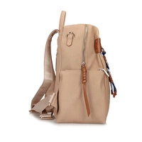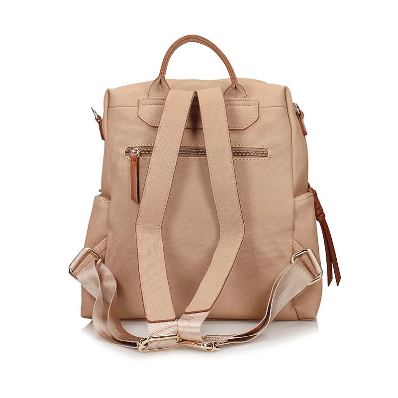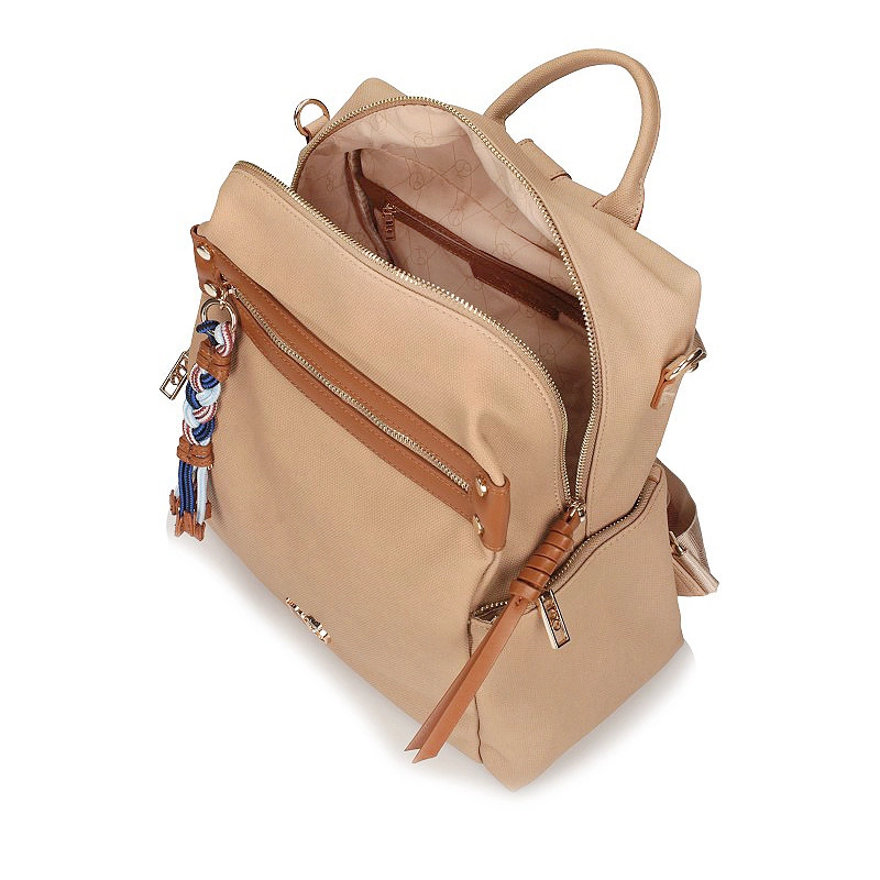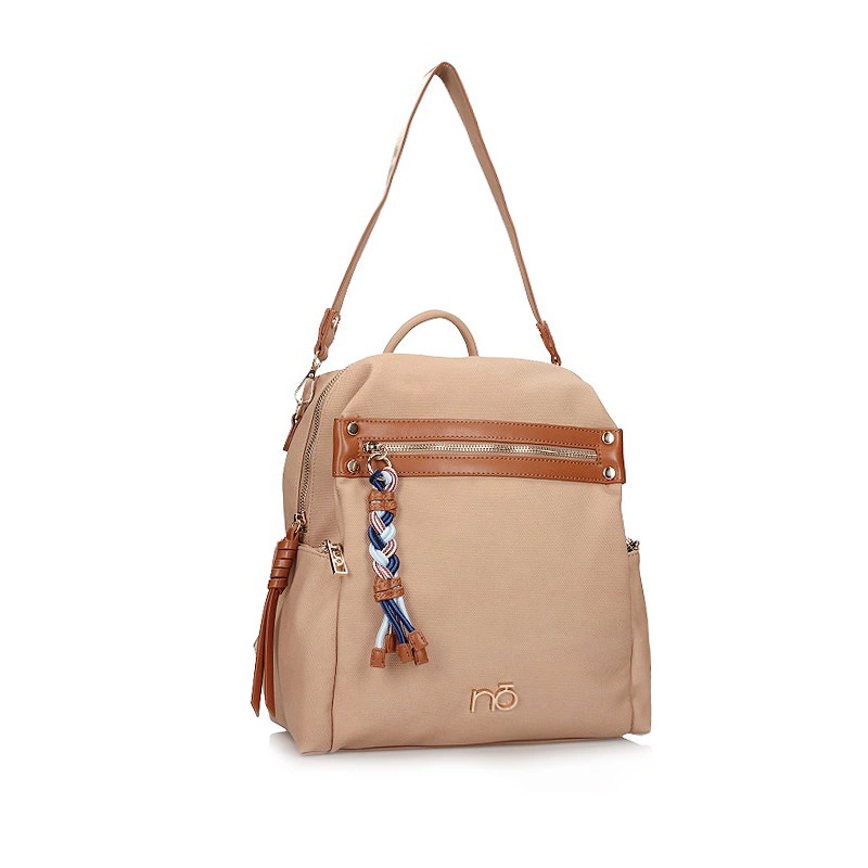 Marka Nobo prezentuje nowy model plecaka damskiego w nadchodzącym sezonie. Wykonany został z wysokiej jakości tworzywa materiału w beżowym odcieniu. W środku wyściełany został jasną tkaniną. Producent wewnątrz plecaka umieścił jedną kieszeń na zamek oraz jedną luźną np. na telefon lub kluczę. Regulowane ramiączka pozwolą na dopasowanie długości do swoich potrzeb. Materiałowe zakończenia suwaków dodają mu oryginalnego wyglądu. Idealnie sprawdzi się w codziennym użytkowaniu jak i na wycieczki.