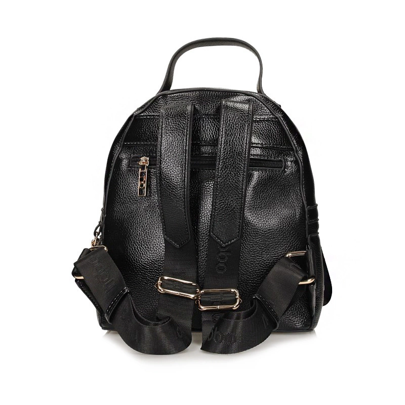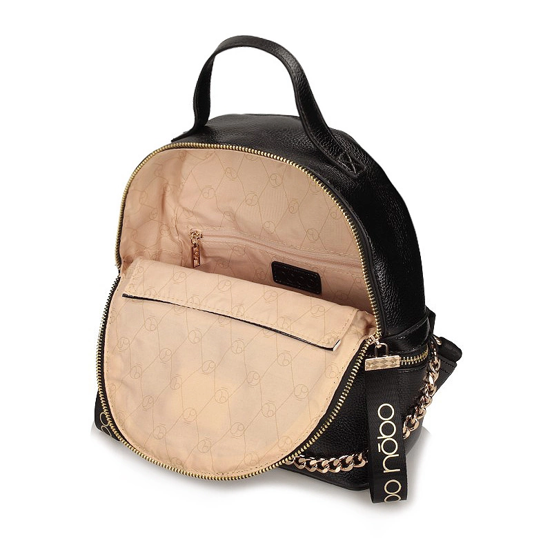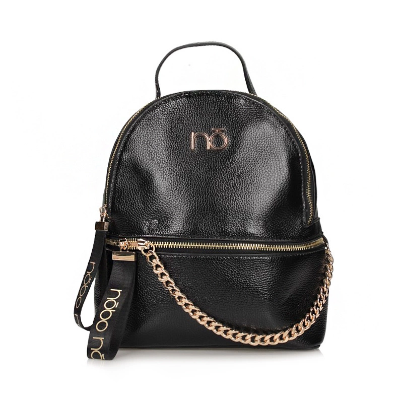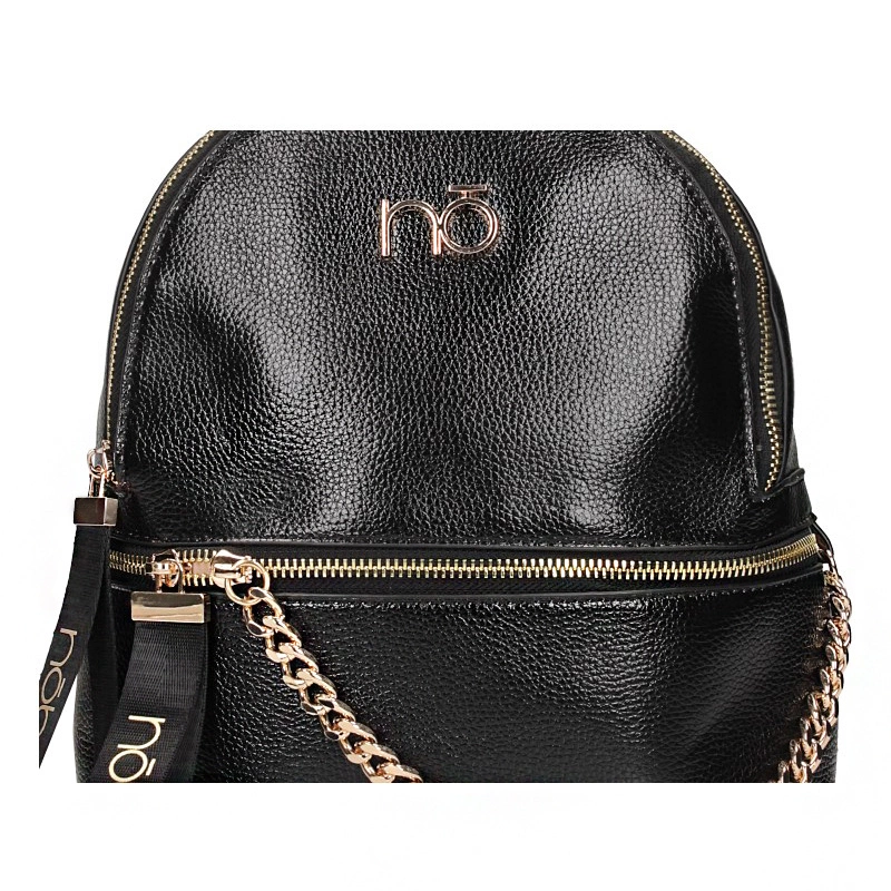 Marka Nobo prezentuje nowy model plecaka damskiego w nadchodzącym sezonie. Wykonany został z wysokiej jakości tworzywa sztucznego w klasycznym czarnym odcieniu. W środku wyściełany został jasną tkaniną. Producent wewnątrz plecaka umieścił jedną kiszeń na zamek oraz jedną luźną np. na telefon lub kluczę. Regulowane ramiączka pozwolą na dopasowanie długości do swoich potrzeb. Złoty łańcuszek oraz materiałowe zakończenia suwaków dodają mu oryginalnego wyglądu. Idealnie sprawdzi się w codziennym użytkowaniu jak i na wycieczki.