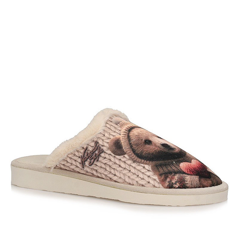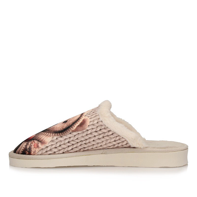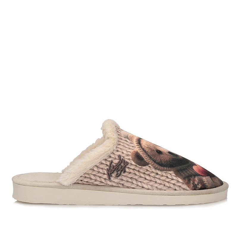 W domowych laczkach najważniejsza jest wygoda, komfort oraz ciepło. Takie połączenie otrzymaliśmy od marki Meteor. Przedstawiamy państwu model w odcieniu beżu z ciekawą aplikacją. Kapcie zostały wykonane z wysokogatunkowego materiału tekstylnego z dbałością o każdy element. Cholewka przyozdobiona przytulnym misiem. Nosek szerszy, co sprawi, że laczki będą wygodne w palcach. Wnętrze wyściełane miłą w dotyku delikatną tkaniną, która na pewno zadba o ciepło naszych stóp w jesienno-zimowe dni. Wyprofilowana wkładka przyniesie nam komfort poruszania się, a elastyczna podeszwa zapobiegnie przed ślizganiem się.