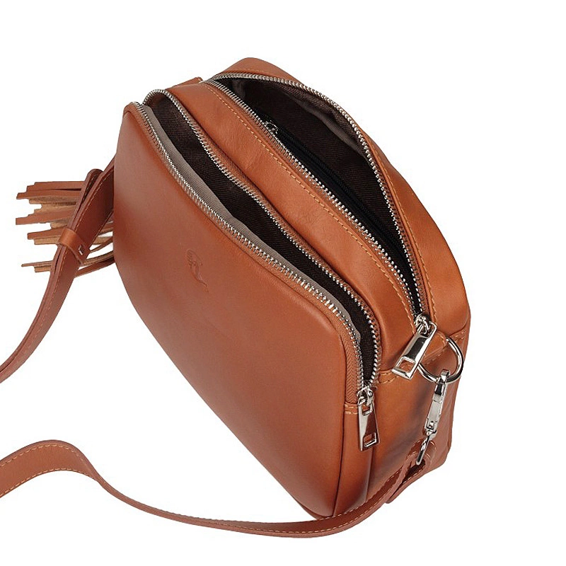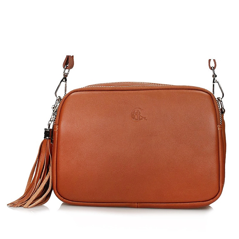 Brązowa listonoszka Canaletto z najnowszej kolekcji jesienno-zimowej. Model dwukomorowy. Wewnątrz torebki umieszczono kieszonkę zapinaną na zamek. Wygodny w użytkowaniu pasek torebki posiada możliwość regulacji. Po boku torebki doczepiono ozdobny frędzel. Kieszeń zapinana na zamek, umieszczona na tyle torebki pomieści klucze czy dokumenty. Polska produkcja.