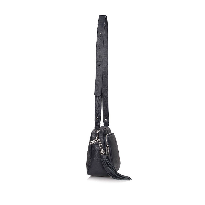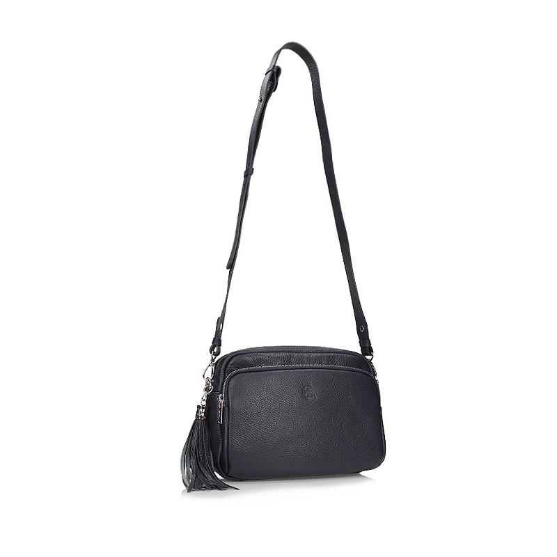Granatowa listonoszka Canaletto z najnowszej kolekcji jesienno-zimowej. Model jednokomorowy, wyposażony w dużą kieszeń na przodzie torebki zapinaną na zamek. Wewnątrz torebki umieszczono kieszonkę zapinaną na zamek. Wygodny w użytkowaniu pasek torebki posiada możliwość regulacji. Po boku torebki doczepiono ozdobny frędzel. Kieszeń zapinana na zamek, umieszczona na tyle torebki pomieści klucze czy dokumenty. Polska produkcja.