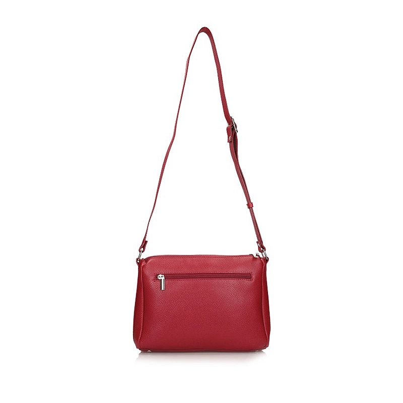 Czerwona listonoszka Canaletto z najnowszej kolekcji jesienno-zimowej. Wykonana ze skóry naturalnej. Wyposażona w dwie komory, każda komora zapinana na zamek. Wewnątrz torebki umieszczono kieszonkę zapinaną na zamek. Wygodny w użytkowaniu pasek torebki posiada możliwość regulacji. Kieszeń zapinana na zamek, umieszczona na tyle torebki pomieści klucze czy dokumenty. Polska produkcja.