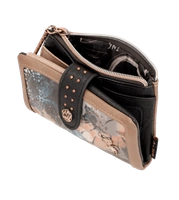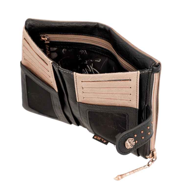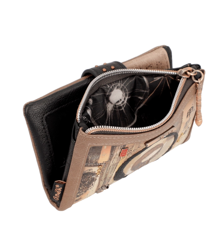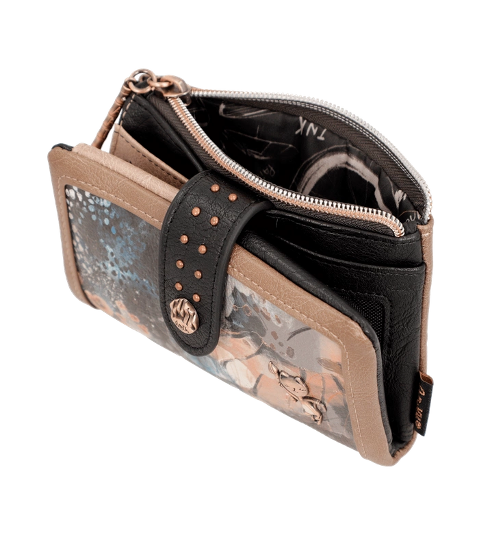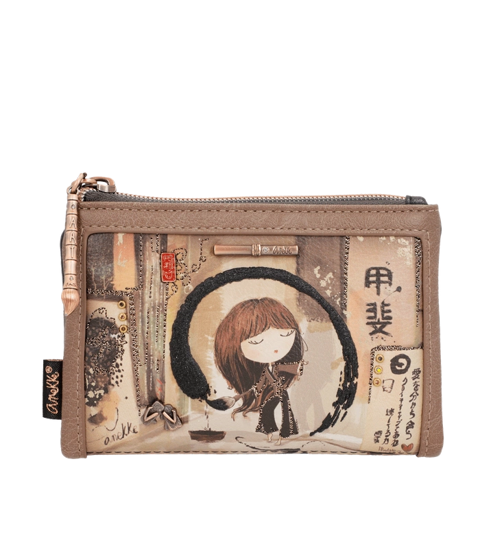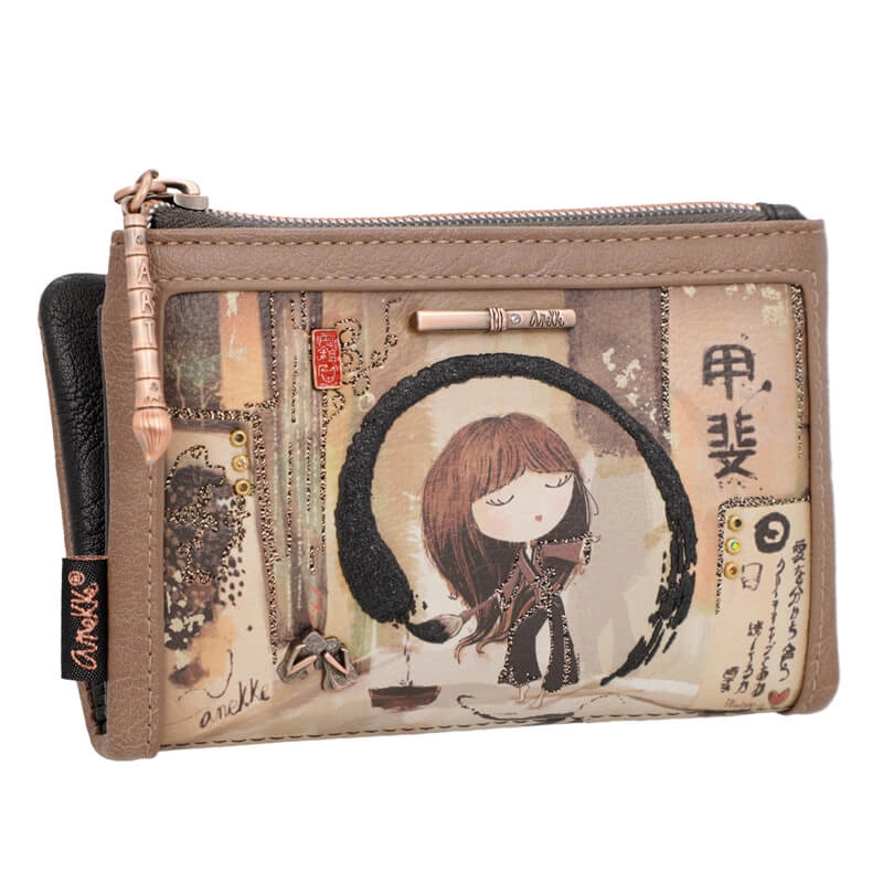 Hiszpańska marka Anekke przedstawia nam portfel z najnowszej kolekcji jesienno-zimowej. Model wykonany z skóry ekologicznej licowej w odcieniu brązu. Anekke Shoen to kolekcja będąca hołdem dla malarki Uemury Shoen. Która uważana jest za pionierkę w świecie sztuki w Japonii, gdyż udało jej się sprawić, że malarstwo zostało uznane za zawód kobiet w czasach, w których nie wolno im było poświęcać się sztuce zawodowo. Dzięki niej Anekke inspiruje się sztuką współczesną, która zawiera w sobie ogrom symboliki i niepowtarzalnych form. Portfel jest w kolorze beżowym. Na froncie pojawia się pracownia otoczona przyborami malarskimi i dziełami sztuki. Nad Anekke rozciąga się koło ENSO, rysowane jest jednym pociągnięciem pędzla i symbolizuje oświecenie tkwiące w ludzkim umyśle i nieograniczoną rzeczywistość.