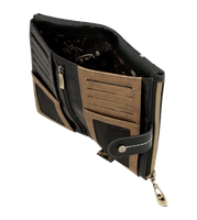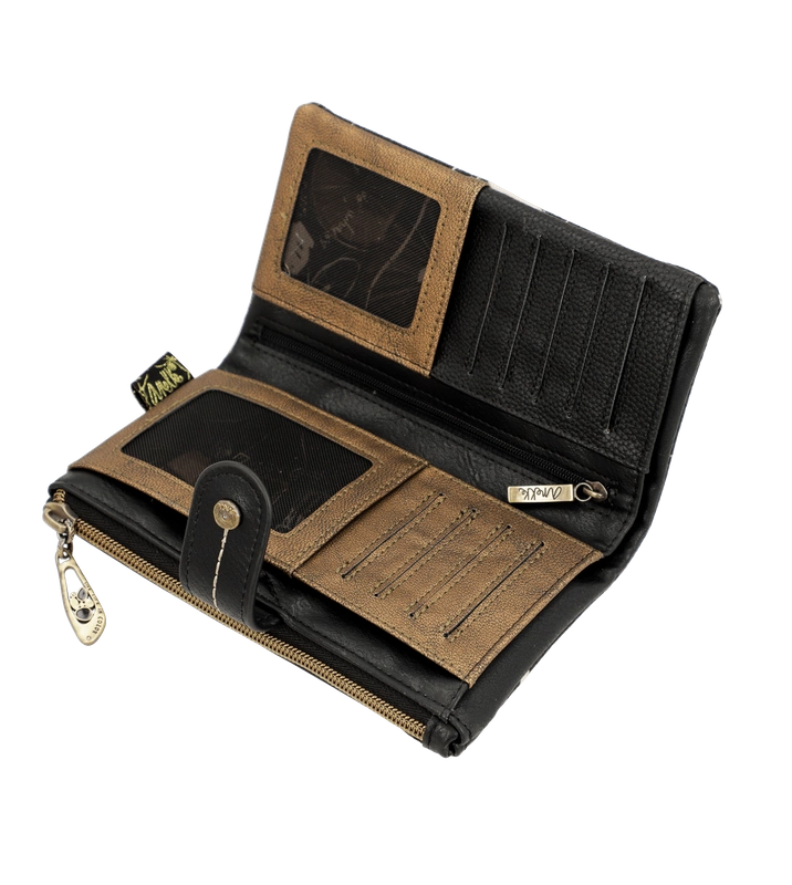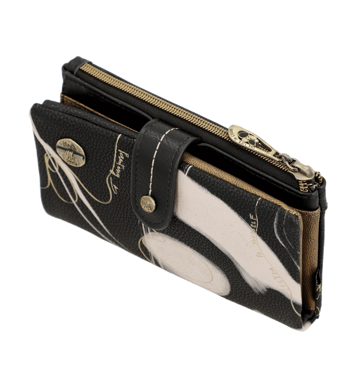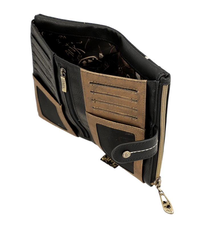 Marka Anekke przedstawia nam portfel Anekke z najnowszej kolekcji, jesienno-zimowej. Model wykonany został z skóry ekologicznej licowej w odcieniu czerni. Ta krótka kapsułkowa kolekcja stworzona w 80% z materiałów z recyclingu, zamyka podróż Anekke po Japonii – jej tradycji, sztuce, architekturze i współczesności. Shodo to tradycyjna japońska technika malarska polegająca na uchwyceniu emocji pociągnięciami pędzla po pustym płótnie. Uroczy portfel z motywem kolekcji Anekke ma miejsce na monety, a także banknoty i karty. Portfel zapakowany w pudełko upominkowe z dedykacją. Model wyposażony w system ochrony RFID: zabezpiecza on przed sczytaniem danych z naszej karty, oraz pobraniu z niej środków.