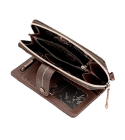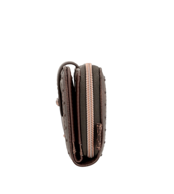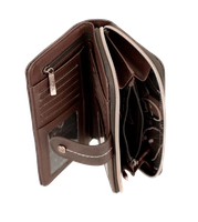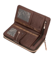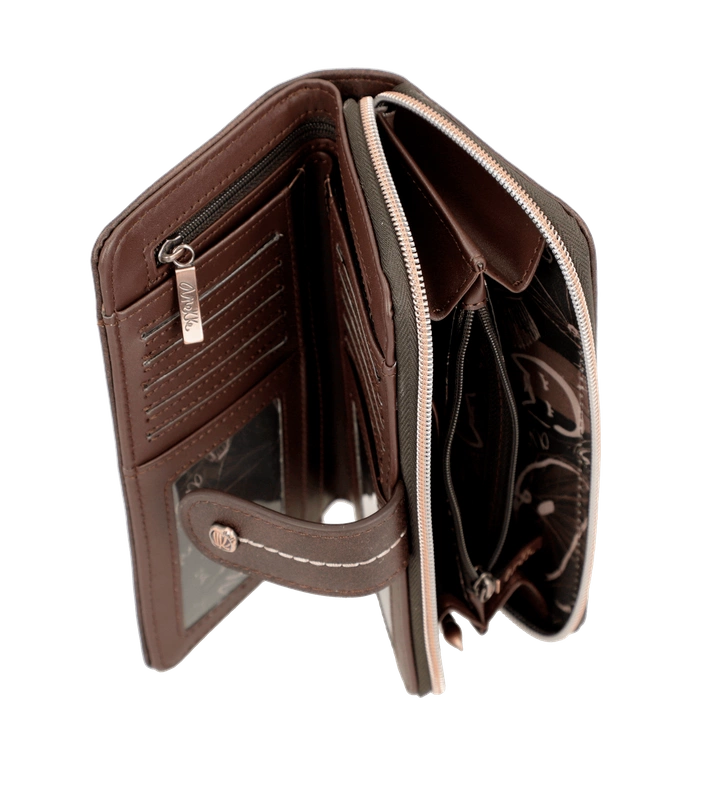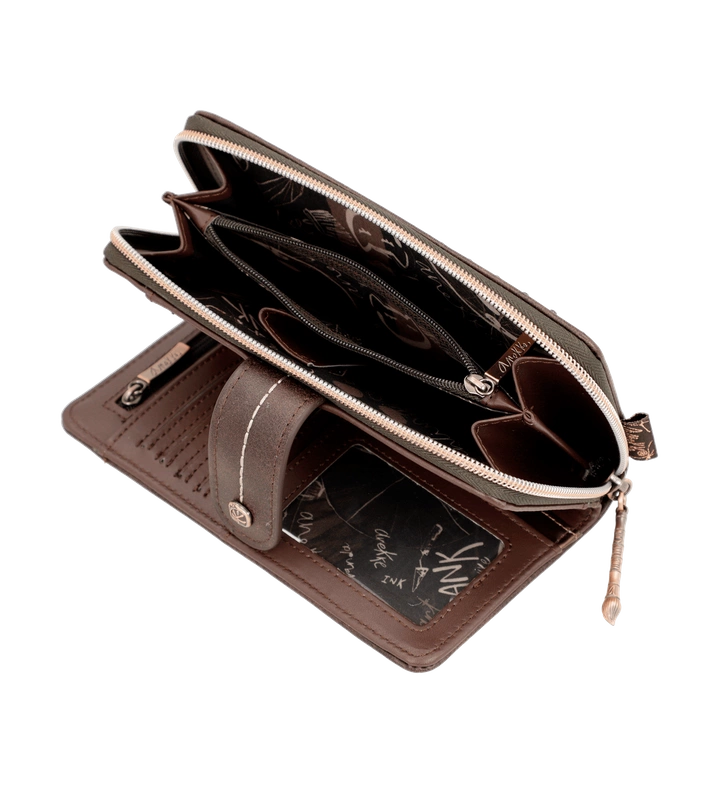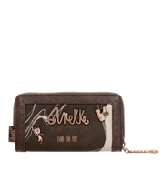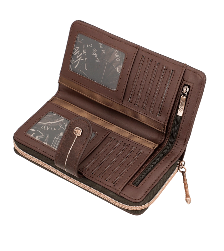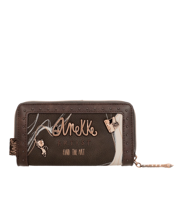 Hiszpańska marka Anekke przedstawia nam portfel z najnowszej kolekcji jesienno-zimowej. Model wykonany ze skóry ekologicznej licowej w odcieniu brązowo-złotym. Ten nadruk łączy się z kolekcją, w której Anekke podróżuje po Japonii i zwiedza różne miejsca. Shodo to tradycyjna japońska technika malarska polegająca na uchwyceniu emocji pociągnięciami pędzla po pustym płótnie. Portfel zapakowany w pudełko upominkowe z dedykacją. Otwiera się na zamek błyskawiczny, ma wyściełane wnętrze i ma wewnątrz miejsce na karty, banknoty oraz wygodną przegrodę zapinaną na zamek do przechowywania monet. Model świetnie sprawdzi się na prezent i przypasuje wielu klientkom.
