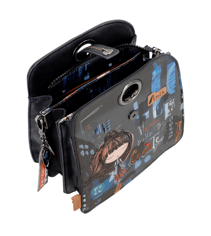Torebka z najnowszej kolekcji jesienno-zimowej hiszpańskiej marki Anekke . Anekke Contemporary to kolekcja inspirowana podróżą po Japonii. Anekke zachwyca się światłem, kształtami, smakami i japońską ikonografią. To podróż przez abstrakcyjne i artystyczne formy. Torebka wykonana ze skóry ekologicznej licowej w odcieniu niebiesko-granatowym. Model trzykomorowy zapinany na magnez. Wygodny w użytkowaniu pasek torebki posiada możliwość regulacji. Torebkę świetnie dopasujemy do stylizacji z sukienkami jak i jeansami.