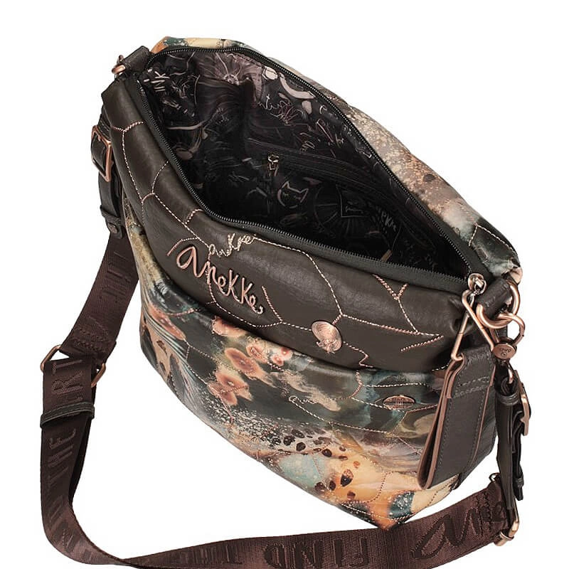 Znana oraz ceniona marka Anekke przedstawia nam kolejną nowość z kolekcji jesienno-zimowej. Kolekcja Anekke Shoen to zainspirowanej współczesną sztuką i architekturą współczesnej Japonii. Fason wykonany z wysokogatunkowej skóry ekologicznej w odcieniu brązu i czarnego. Torebka jednokomorowa, zapinana na praktyczny zamek błyskawiczny. Torebka z przodu ma ukrytą kieszonkę zapinaną na zamek. Wewnątrz posiada organizer oraz jedną kieszonkę, która również zapinana jest na zamek. Regulowany pasek pozwoli nam na dostosowanie torebki do własnych potrzeb. Dzięki wyjątkowej kolorystyce oraz ciekawym wzorom z pewnością stworzy idealne dopełnienie niejednej stylizacji.