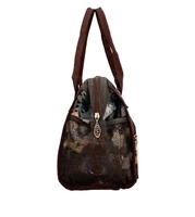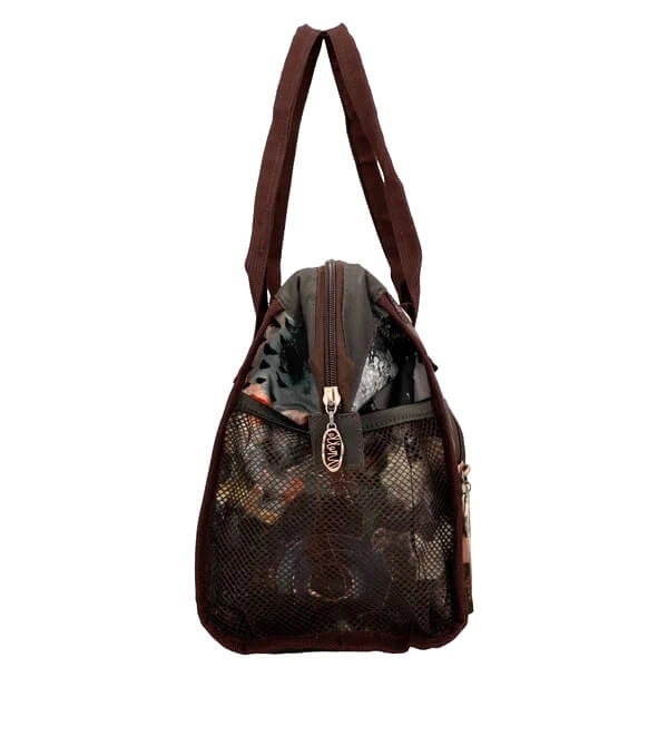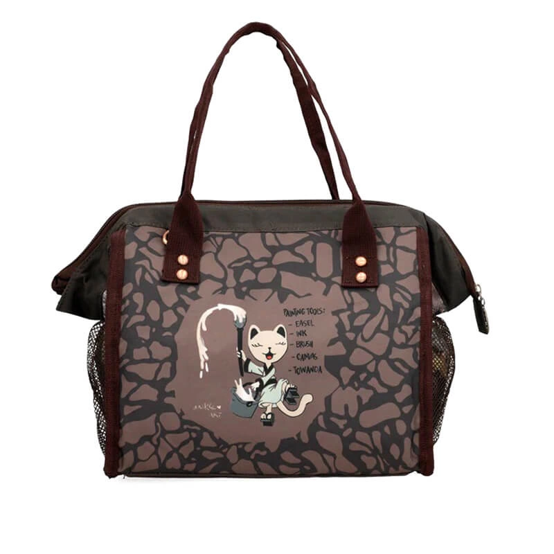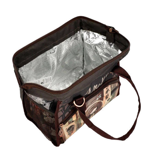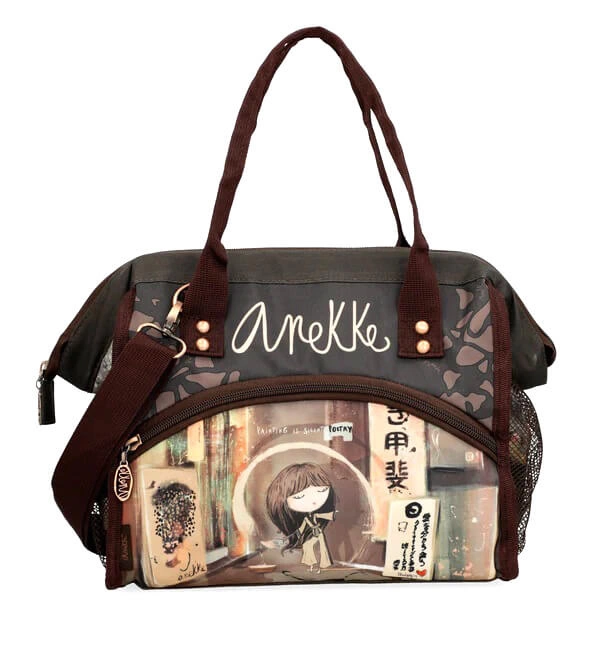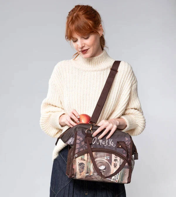 Oryginalna torba hiszpańskiej marki Anekke do transportowania żywności. Unikatowa kolekcja Shōen jest hołdem dla malarki Uemury Shoen, która uważana jest za pionierkę w świecie sztuki w Japonii. Jedna duża przegroda, która wyściełana jest folią dzięki której zawsze utrzymana jest odpowiednia temperatura. Dominującym kolorem jest brąz z przełamaniem różnych odcieni beżu. Uwagę zwraca rysunek malarki, który jest subtelny a wyraża wiele emocji. Przy zamku obrzeża zostały wzmocnione cienkim drucikiem dla lepszego ułożenia się materiału. Z boku kieszonki wykonane z siateczki, na przodzie mniejsza kieszonka zapinana na zamek. Możliwość noszenia torby w ręku lub na ramieniu za pomocą regulowanego, szerokiego parcianego paska. Uwagę warto zwrócić na lekkość torby, która idealnie sprawdzi się do przewożenia żywności do pracy, szkoły czy długie wycieczki. Wybierając powyższy model modnie wspieramy dbanie o ekologię , unikając korzystania z jednorazowych toreb do przenoszenia żywności.