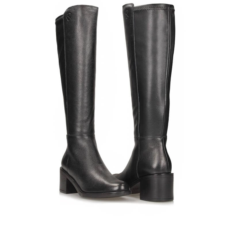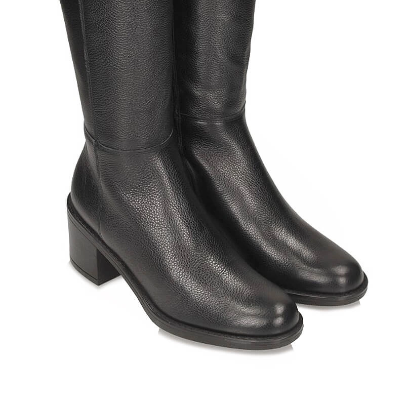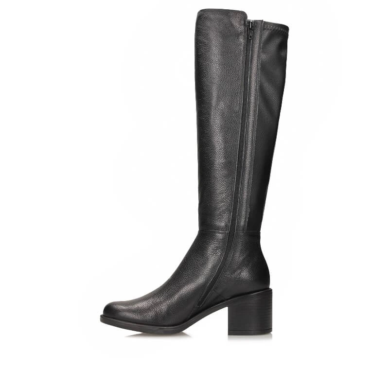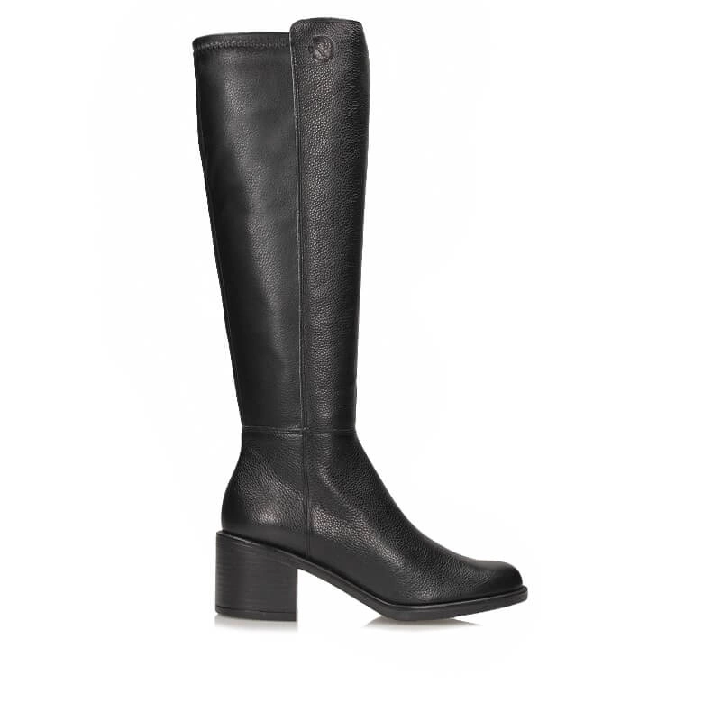 Kozaki pochodzące z linii Ryłko RELAX to propozycja polskiej marki Ryłko. Genialna cholewka wykonana została z najwyższej jakości skóry licowej oraz ekologicznej w czarnym kolorze. Tył cholewki jest bardzo elastyczny, dzięki czemu mamy gwarancję idealnego dopasowania do łydki. Tęgość F. Kobiecy i klasyczny fason, świetnie uzupełni jesienne kreacje - rewelacyjnie prezentuje się z sukienkami, spódnicami każdej długości oraz modnymi tego sezonu płaszczami. Nosek zaokrąglony, lekko uniesiony ku górze. Producent postawił na klasyczny i stabilny obcas o wysokości 6 cm. Jest to optymalna wysokość, która uwydatnia atuty kobiecej sylwetki. Część stopy wyściełana tkaniną zapewniającą optymalne ciepło w chłodne dni, pozostała cześć wzmocniona przyjemnym i odpornym na wycieranie materiałem. Podeszwa wykonana z gumy, dzięki czemu jest antypoślizgowa i amortyzuje większość wstrząsów. Klientki które szukają klasycznego modelu, który zawsze i wszędzie świetnie się prezentuje - oto idealny fason. Polecamy.