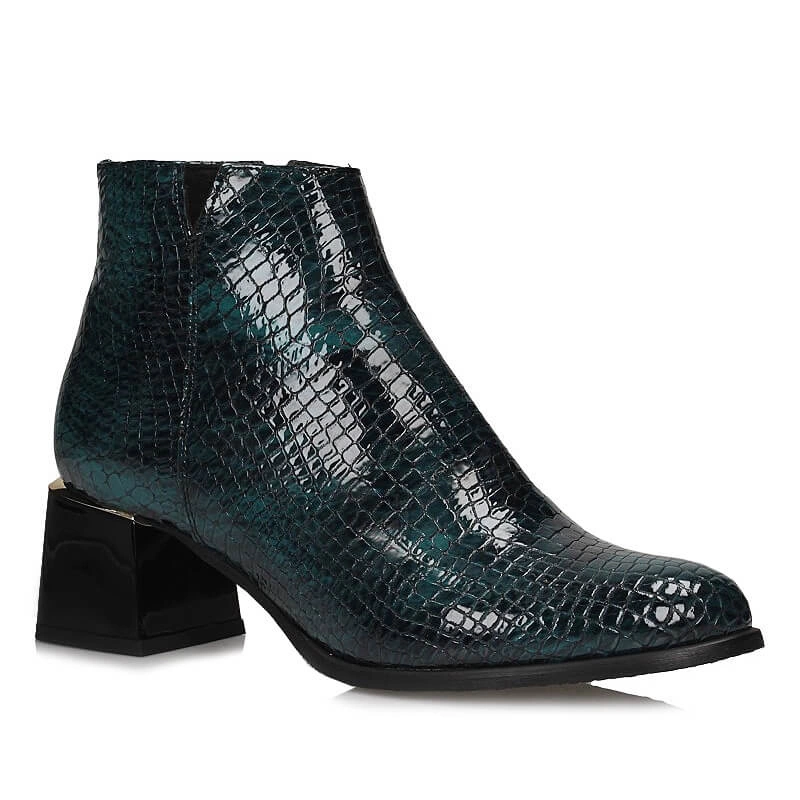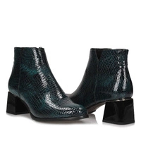 Najnowszy model botka marki Milo to obowiązkowa propozycja dla kobiet lubiących elegancki oufit. Botek wykonany z naturalnej skóry lakierowanej, która stylizowana jest na skórę krokodyla. Uwagę warto zwrócić na niecodzienny i bardzo oryginalny kolor zielono - czarny. Połączenie kolorystyczne wzbogaci i nada niepowtarzalności naszym stylizacjom. U góry cholewki delikatne wycięcie w kształcie litery V. Nosek migdałowy, lekko uniesiony ku górze. Zapinanie na solidny zamek, który został zakończony złotym suwaniem. Obcas szerszy i stabilny o wysokości 5 cm. Prezentowany model wysmukla sylwetkę i uwydatnia kobiece atuty. Idealny do sukienek oraz spodni. Wnętrze wyściełane przyjemną dla stopy ociepliną, odporną na wycieranie. Podeszw z tworzywa, z cechami antypoślizgu, które daje poczucie bezpieczeństwa np. na schodach.