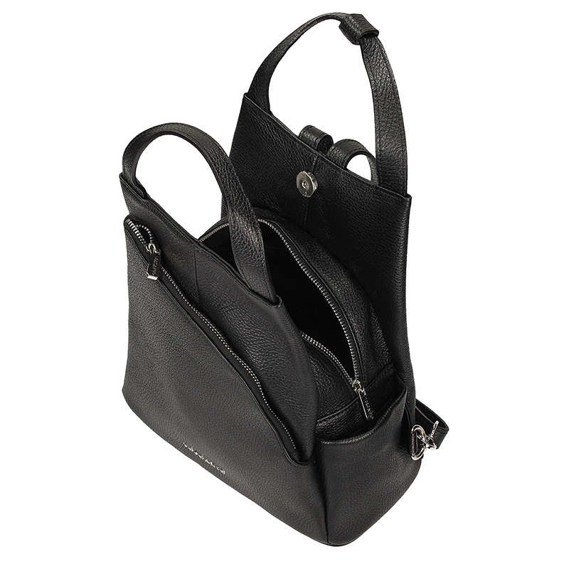 Ceniona marka Toscanio prezentuje najnowszy model plecaka damskiego z kolekcji jesienno-zimowej. Plecak to modny w tym sezonie zamiennik klasycznej torebki, który przykuwa uwagę każdym elementem takim jak kolor, fason czy system zamykania. Model wykonany z najwyższej jakości skóry naturalnej. Klasyczny kolor świetnie wpisuje się w najnowsze modowe trendy, dlatego każda stylizacja zyskuje na oryginalności. Możliwość noszenia w ręku dzięki uchwytom, które są spięte zatrzaskiem. Jednokomorowy środek który ma charakter i torebkowy format. Wewnątrz przegroda na telefon oraz kieszonka zapinana na zamek. Zarówno z przodu jak i tyłu producent wszył kieszonki, które gwarantują szybkie poszukanie najważniejszych dla nasz drobiazgów typu klucze, dokumenty. Kontrastujące srebrne zamki to świetne rozwiązanie i wzbogacenie prezentowanego fasonu. Plecak posiada regulowane szelki, dzięki czemu każdy ustawia odpowiednią dla siebie wysokość. Dno usztywnione, wzmocnione, pozwala zachować preferowany kształt w każdej sytuacji.